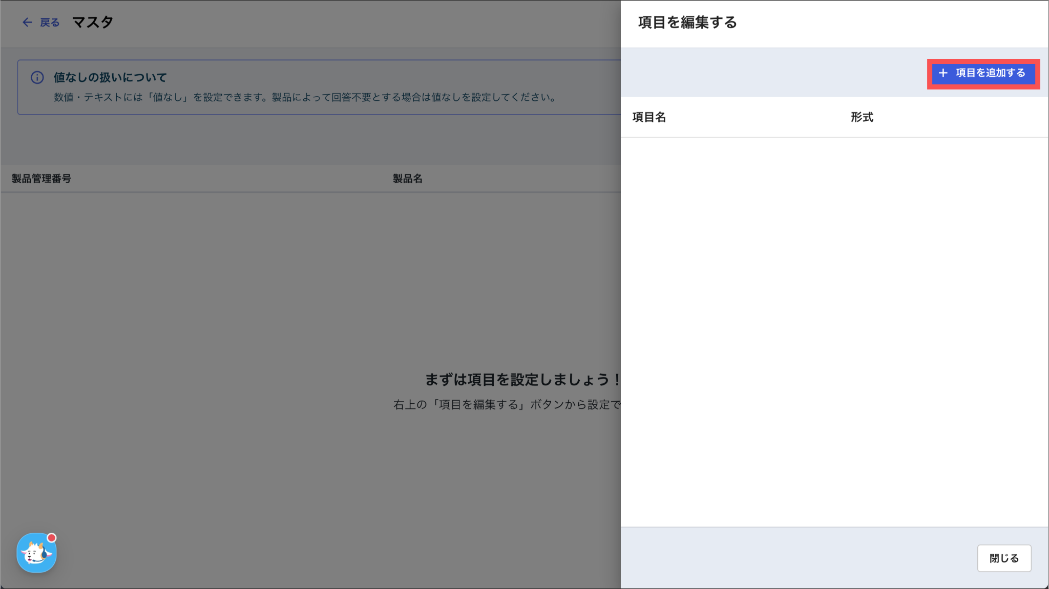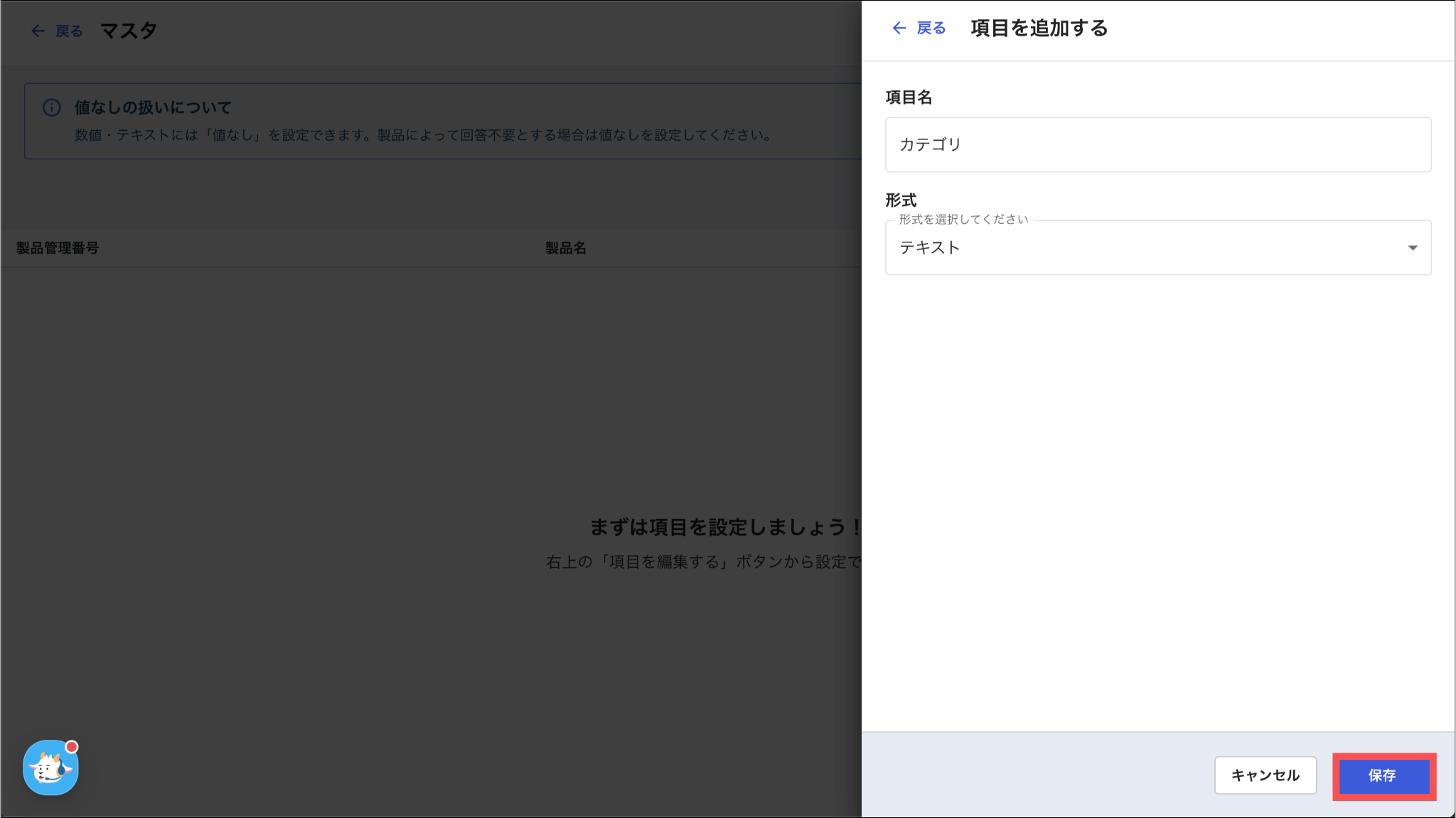 項目の名前に加え、その特性に合わせて「形式」を以下のいずれかから選択します。