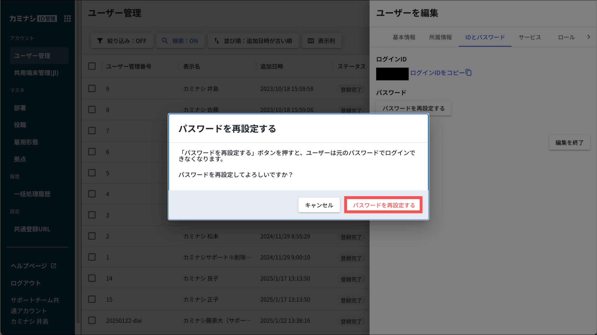 カミナシレポート・カミナシ従業員・カミナシ教育・カミナシ設備保全・カミナシID管理のいずれかにアクセスします。