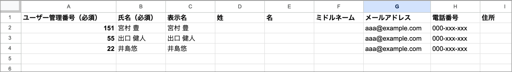 そのため、「登録済みユーザーデータ」をご利用の際は、更新したいユーザー情報のみを残し、更新不要なユーザー情報は削除いただいて問題ありません。