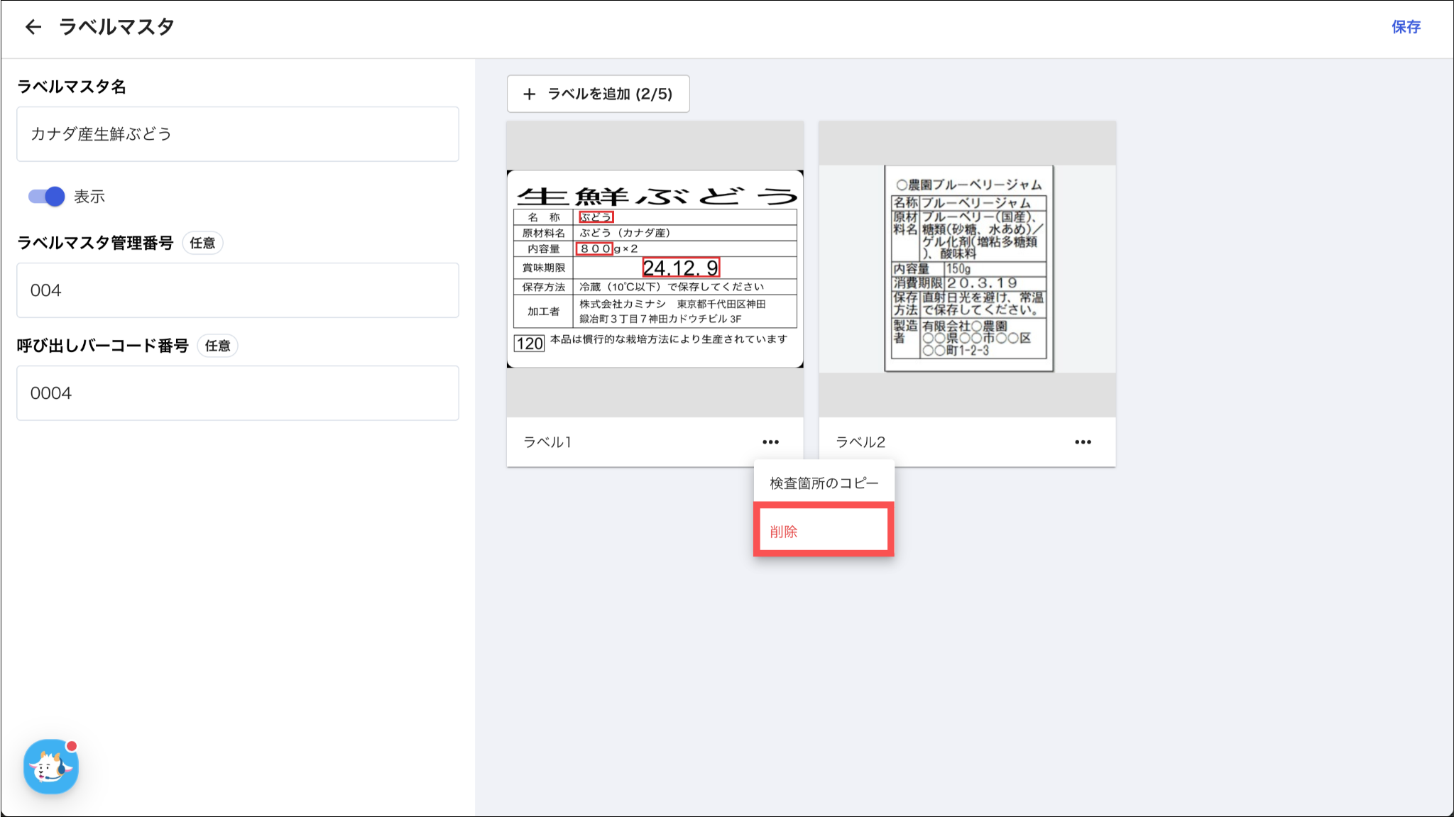 一度削除されたラベル見本は復元できませんのでご注意ください。