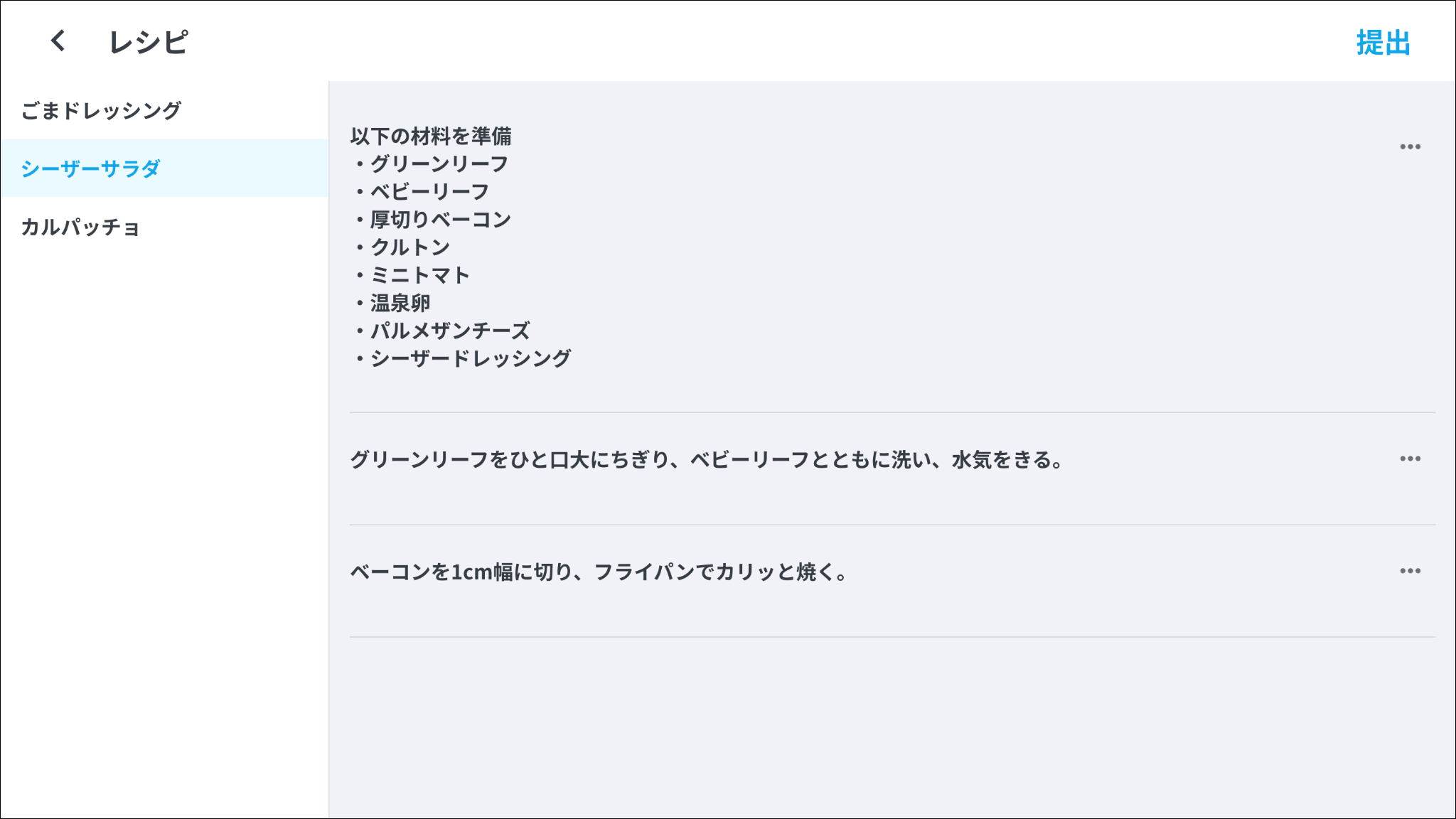 そうするとiPadでは、以下のように表示されます。サイドバーで、見たいレシピをタップすると見ることができます。