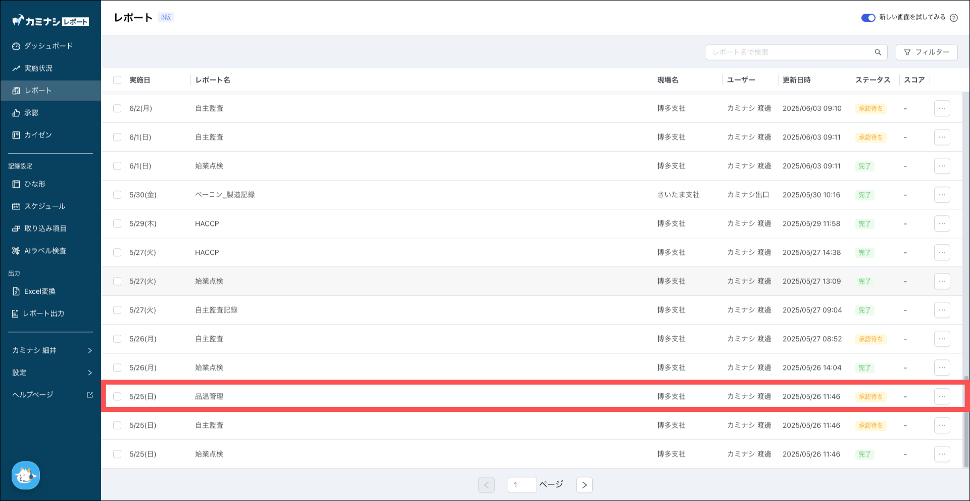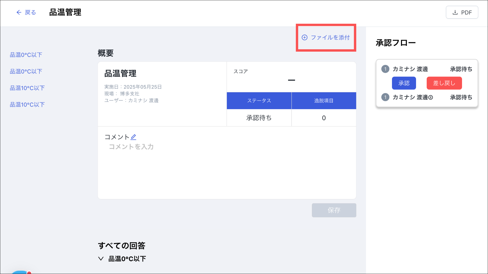 1. カミナシレポート 管理画面にログインする2. 「レポート」を押し、ファイルを添付するレポートを押す3.「ファイルを添付」より資料を添付するExcelとPDFファイルのファイル形式のみ添付できます。※添付ファイルの最大容量は4MBとなりますよくある質問は、こちらからご確認ください。