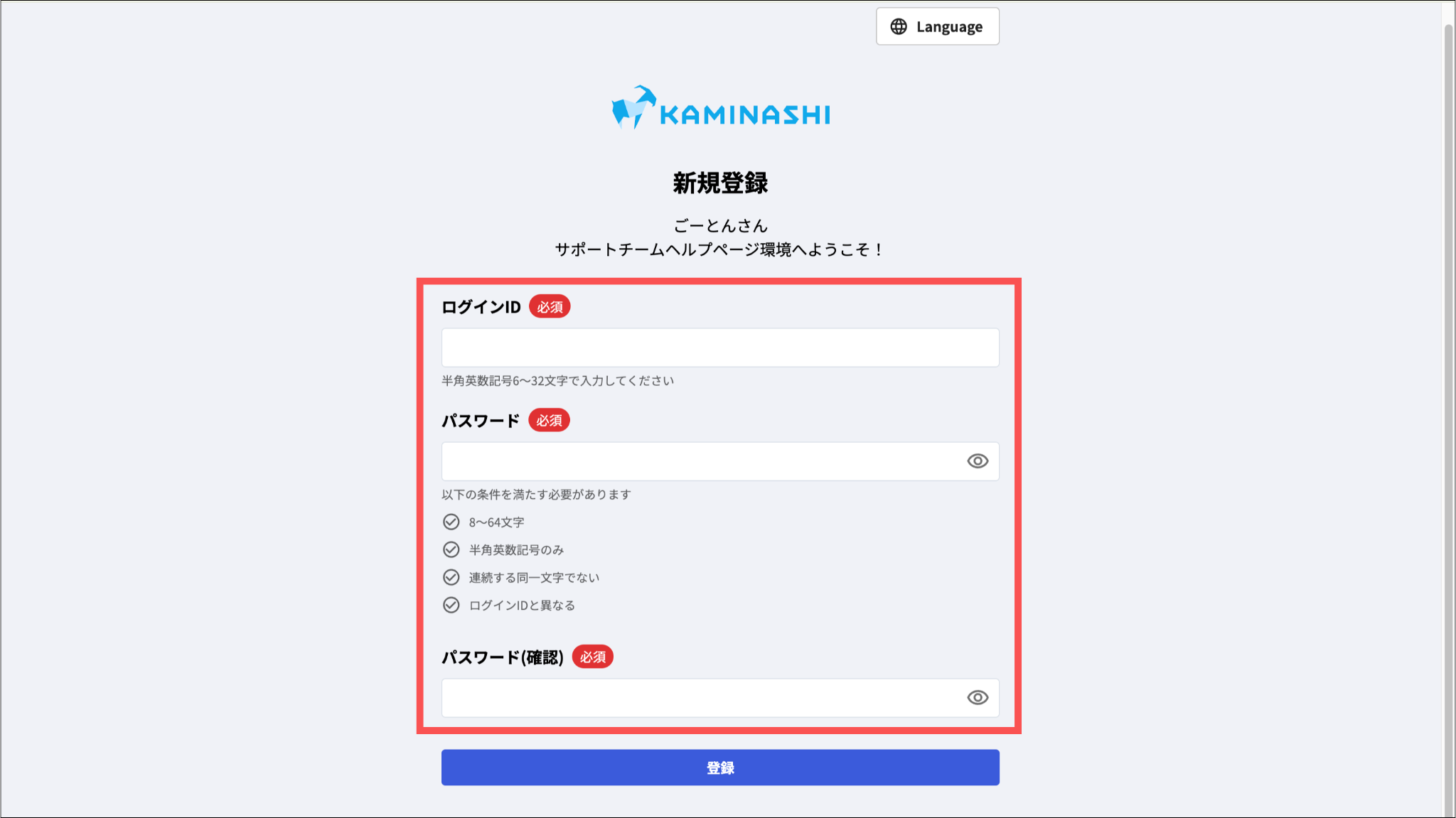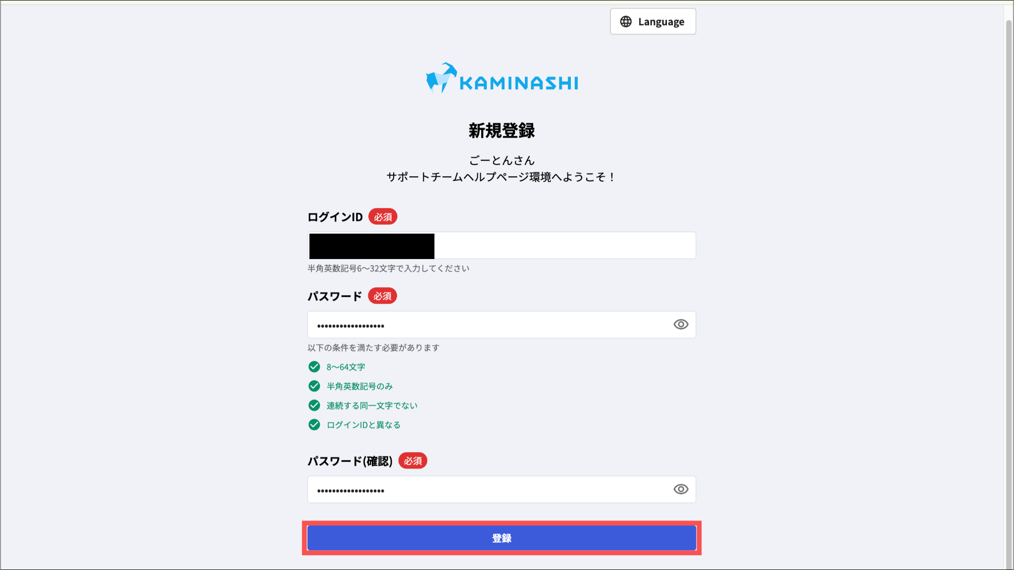 パスワードはログインIDと異なる文字列を設定してください。