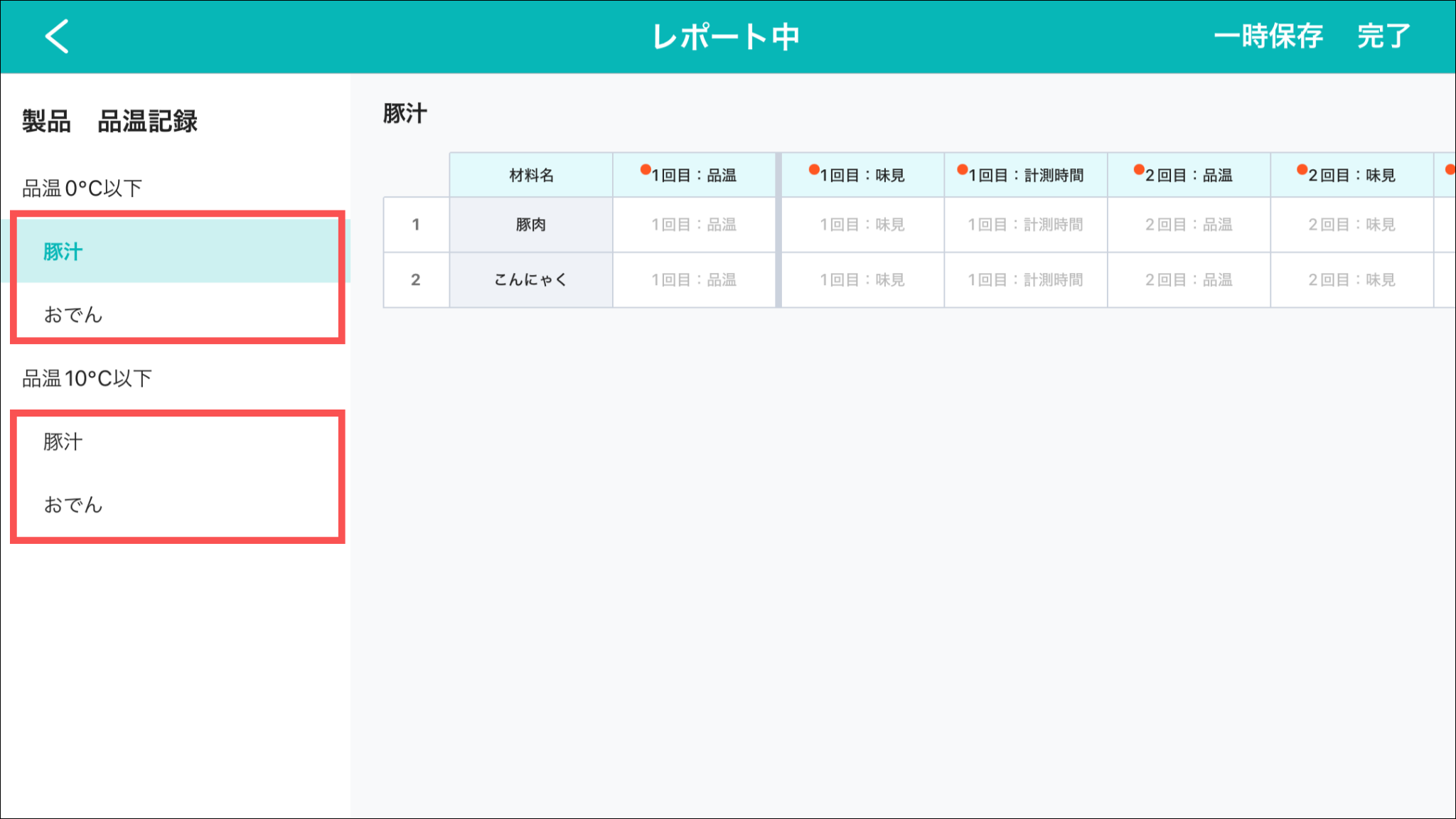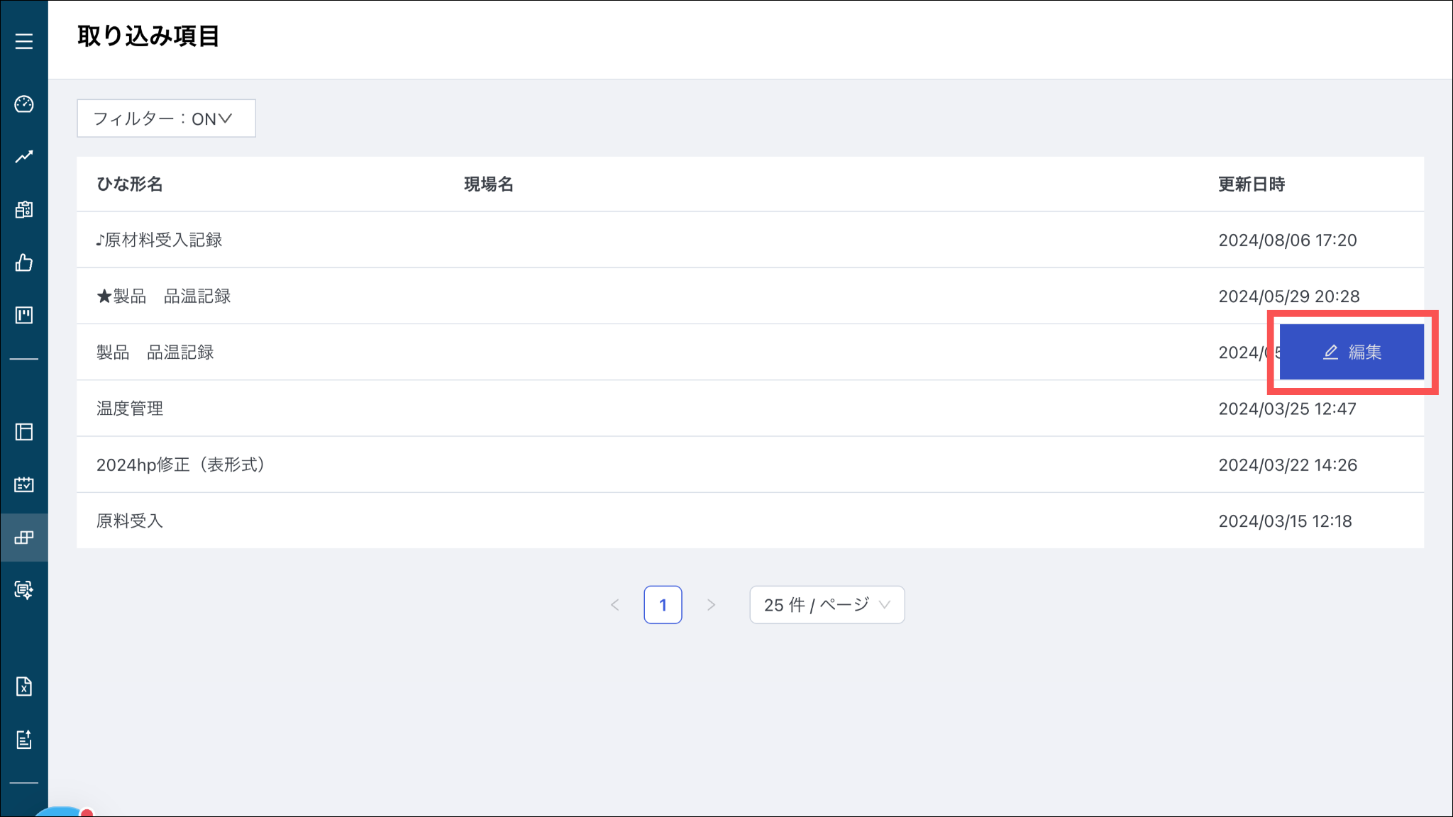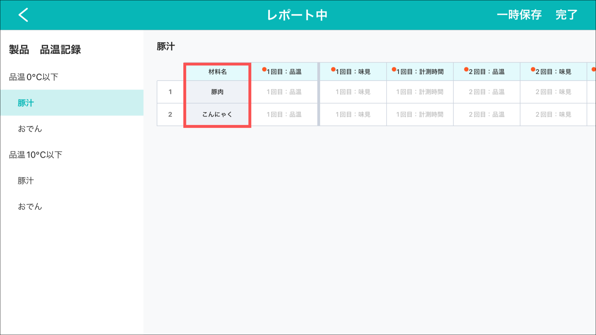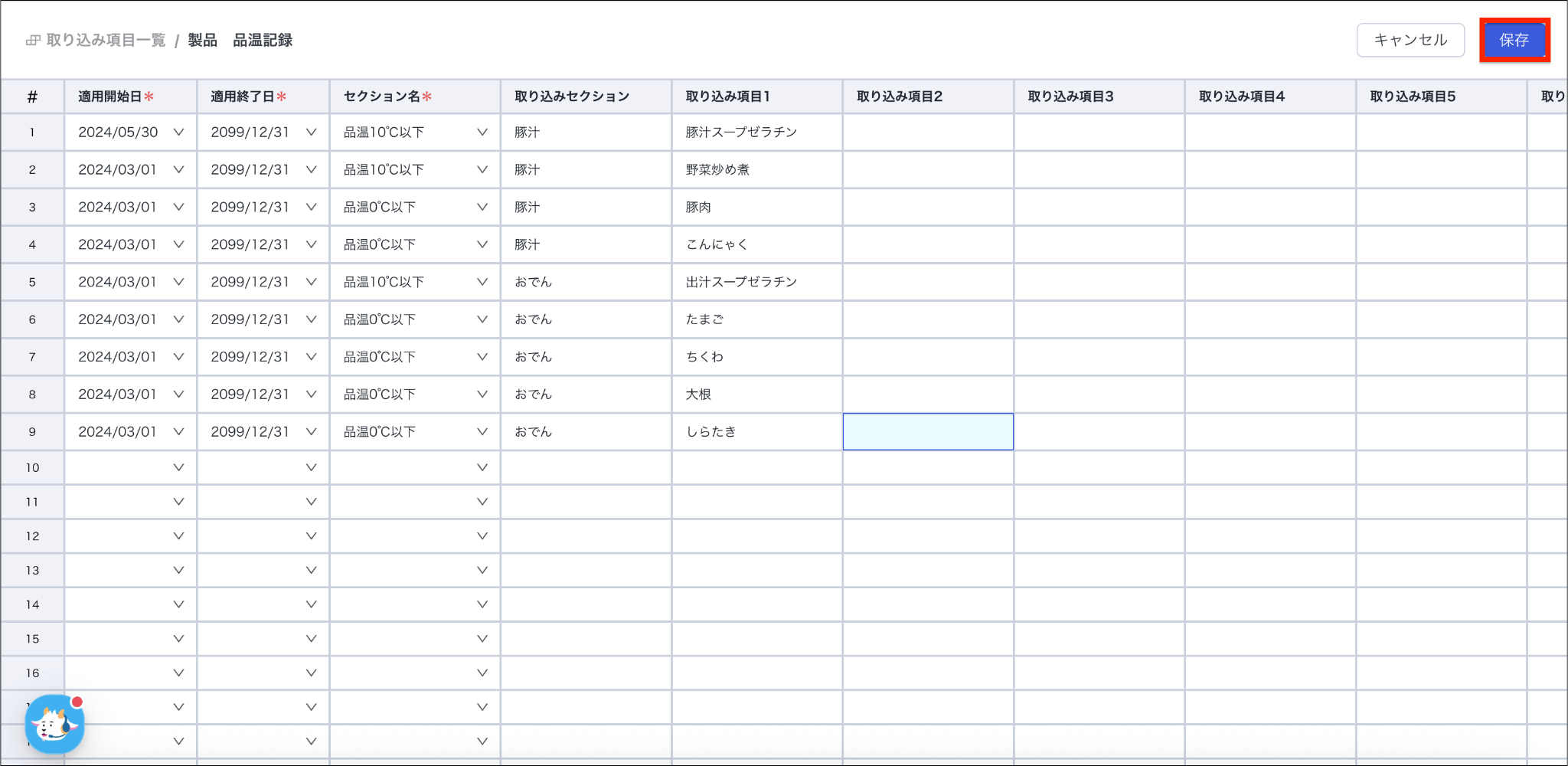 「製品 品温記録」を例として、日々変動する「製品名」「材料名」などの項目を取り込み項目として登録をする方法をご説明します。