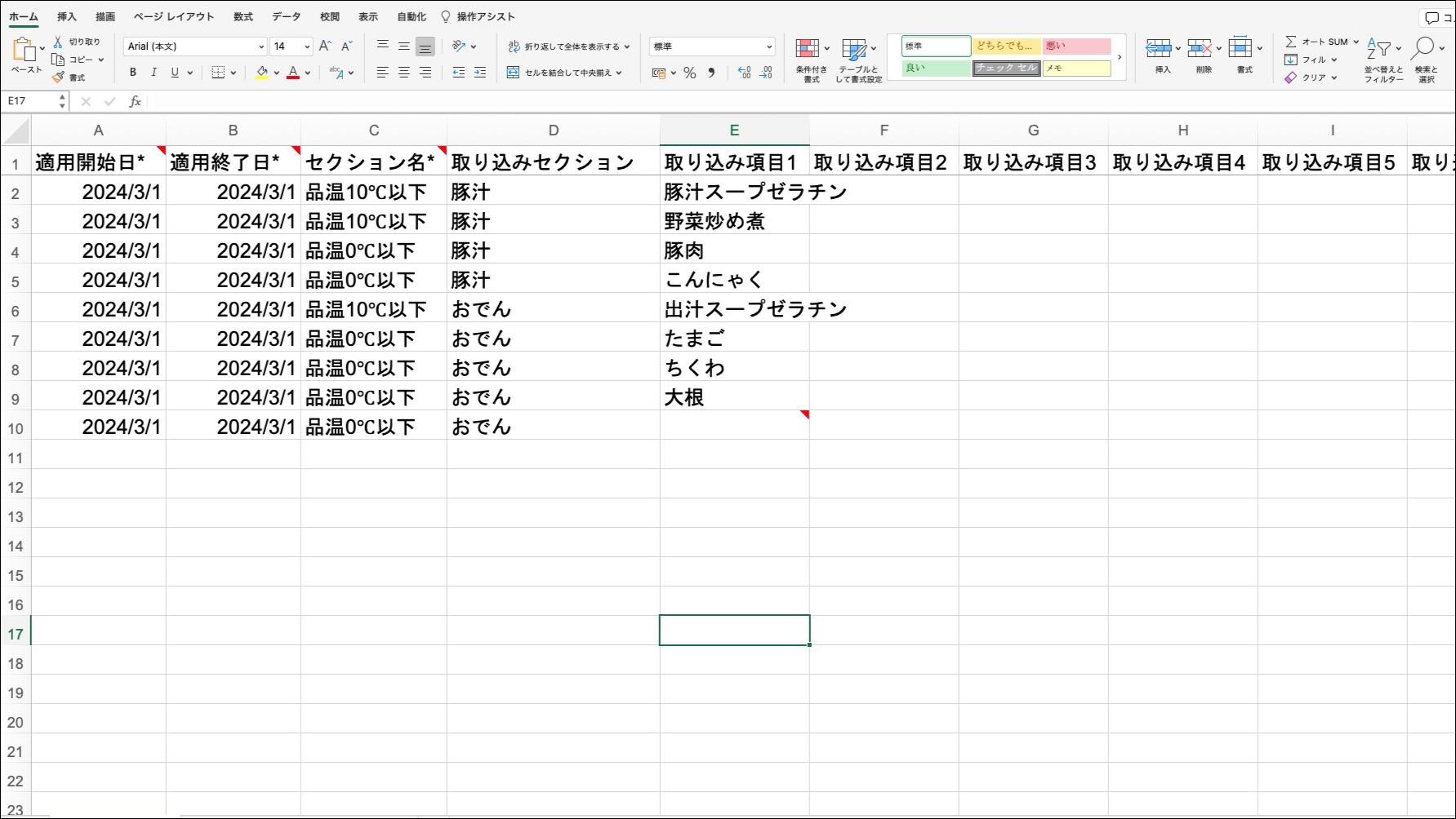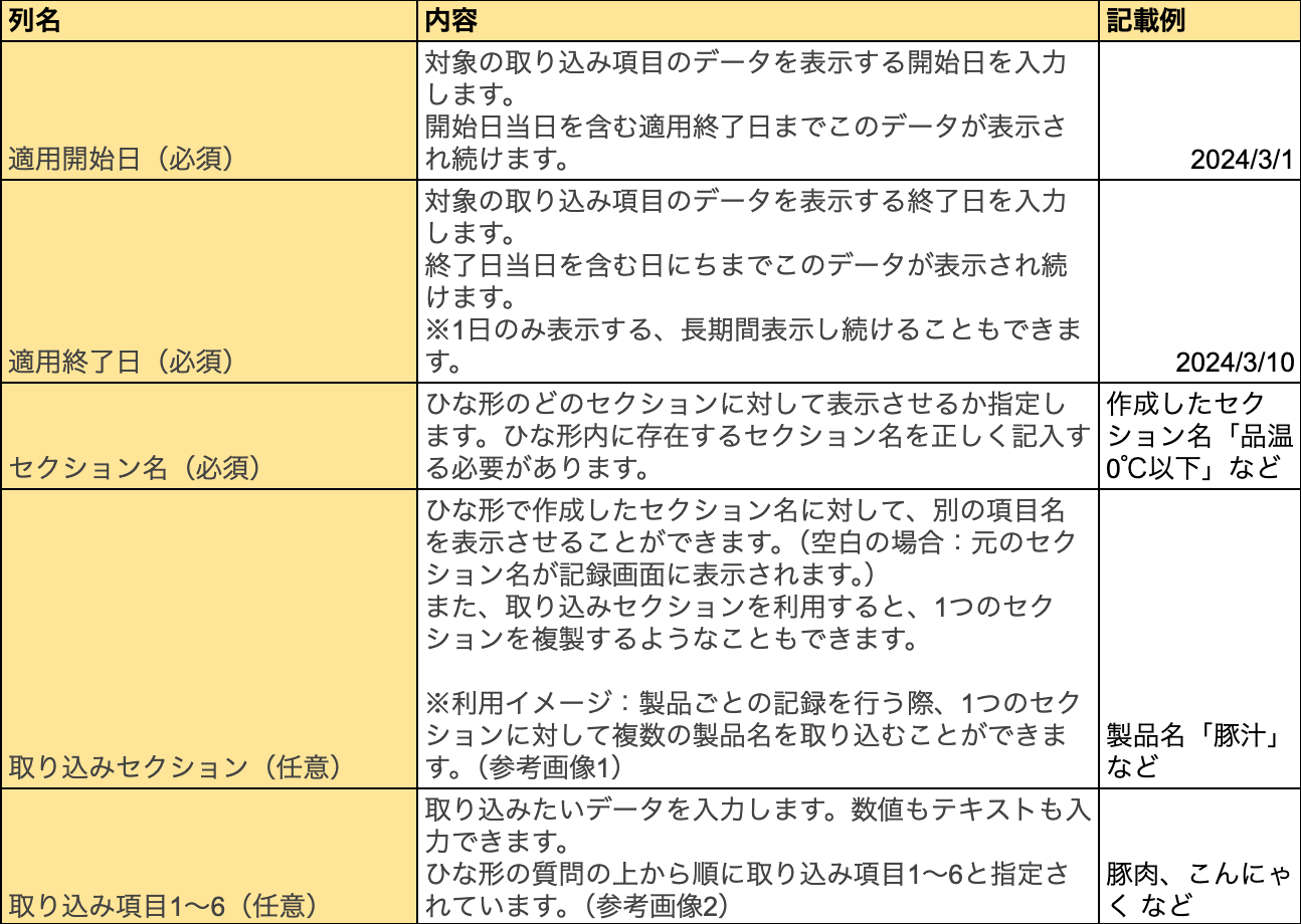 取り込み項目(製品品温チェック)_入力イメージ:説明用のシート