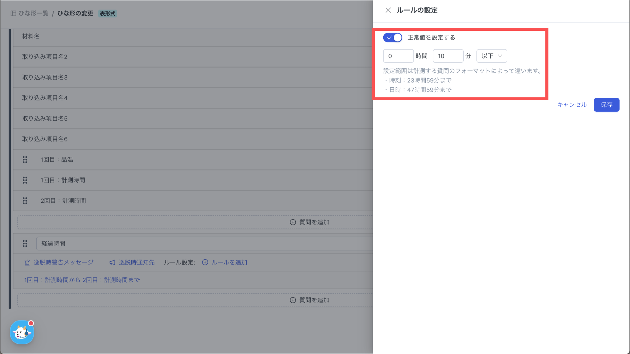 時間計測では、「何時間何分より短い」や「何時間何分より長い」といったルールを設定することができます。