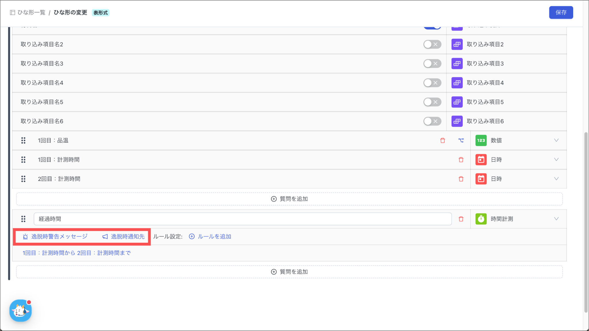 設定の詳細については「ひな形に質問を作成する: 6.逸脱時の設定を行う」をご参照ください。