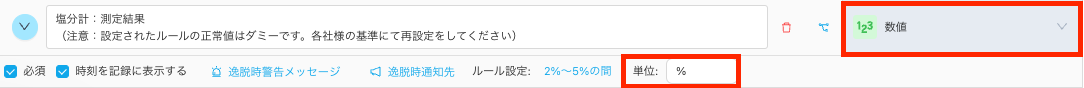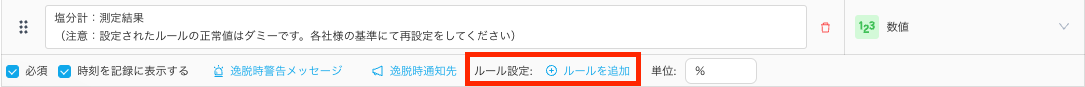 塩分計・糖度計の正常値・異常値等がある場合は「ルールを追加」してください。