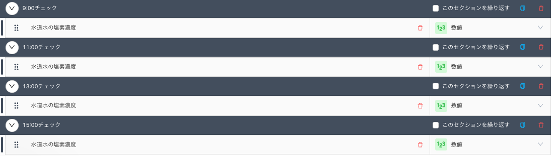 ▲セクションに時間を入れて、塩素チェックをまとめた活用例