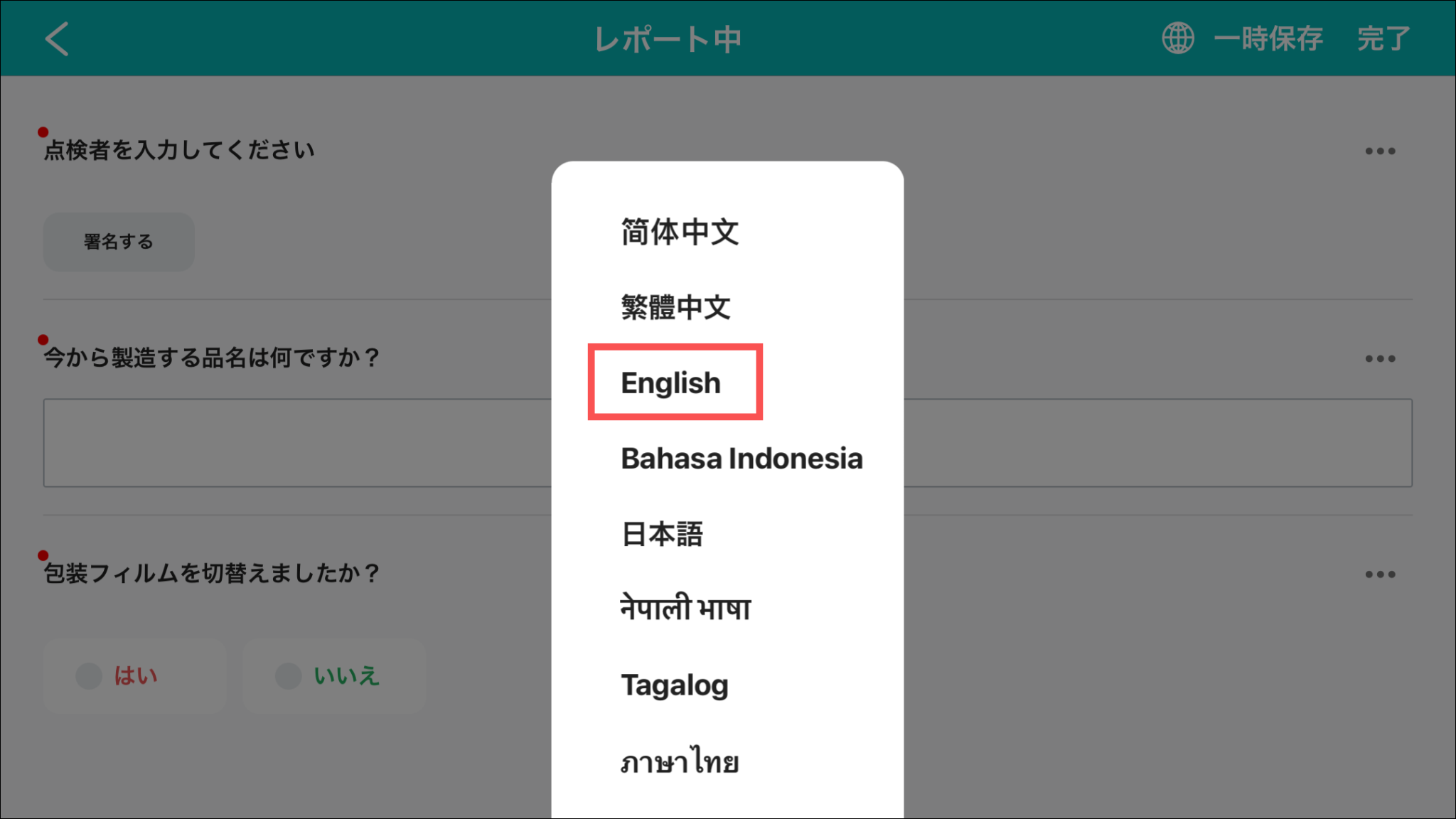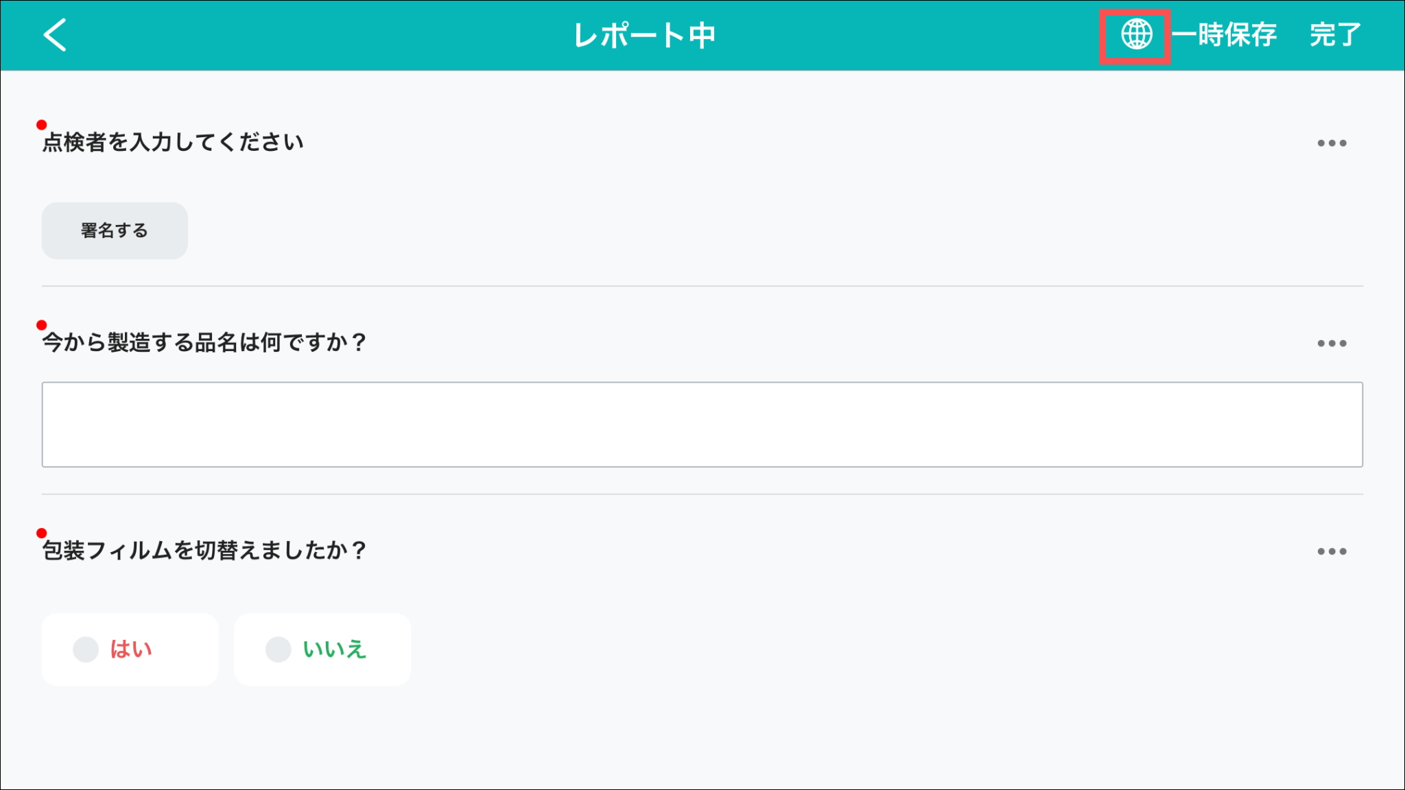 レポートの記録開始の手順は「記録アプリ(iOS/iPadOS)にて、レポートを新規作成する」をご参照ください。