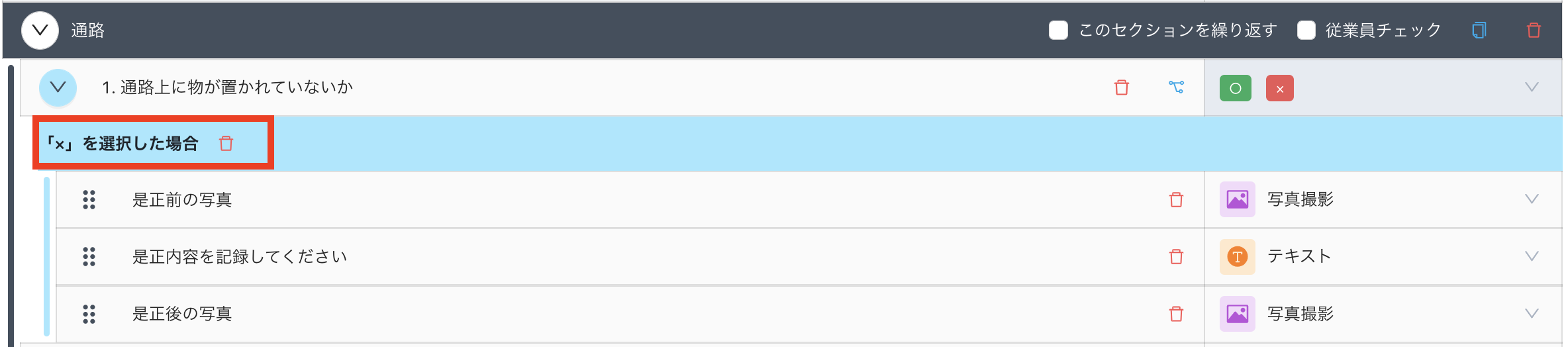 そのためには、不備があった場合に写真を撮る質問が出るよう、条件分岐設定を入れるのがおすすめです。
