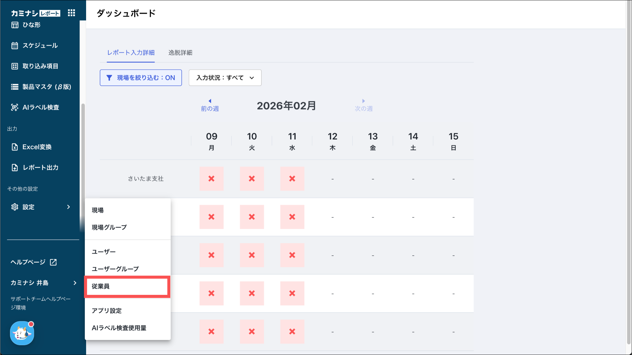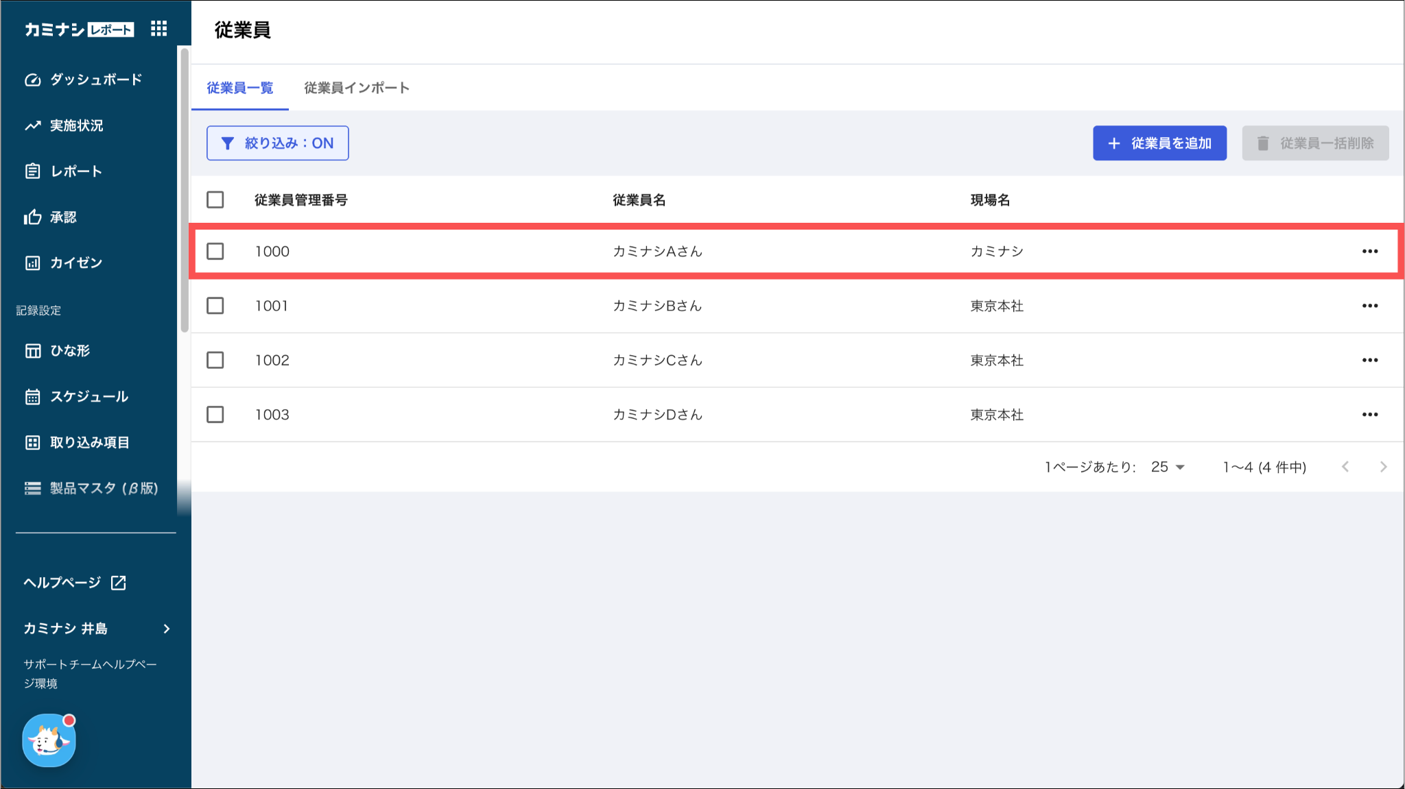 1. カミナシレポート 管理画面にログインする2.「設定」を押し、「従業員」を選択する3.「従業員一覧」を開き、編集する従業員を押す4. 従業員情報を編集し、「保存」を押すよくある質問は、こちらからご確認ください。