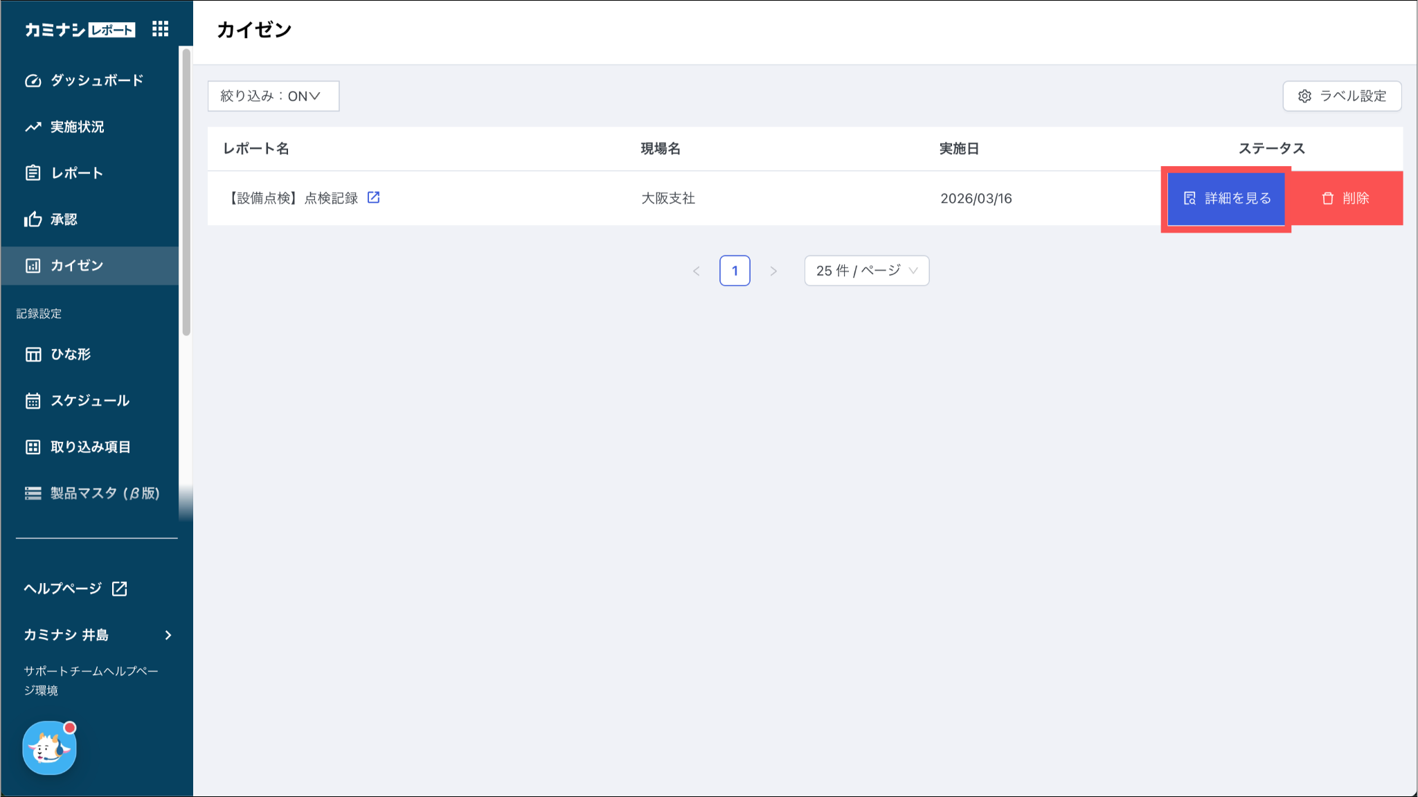 レポートを作成した現場が、ログイン中のユーザーの「所属現場」に紐付いていない場合は、カイゼン一覧に表示されません。