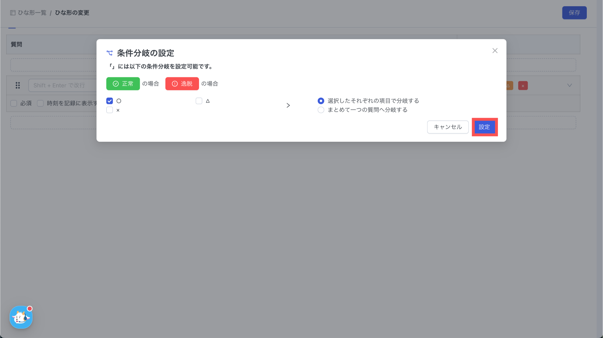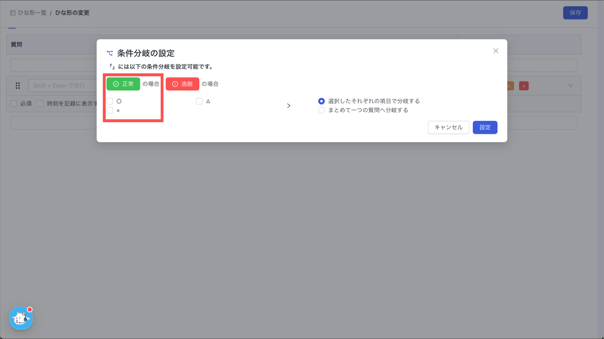 「正常」と「逸脱」の両方を指定すると、それぞれ別の質問を出すように設定することもできます。