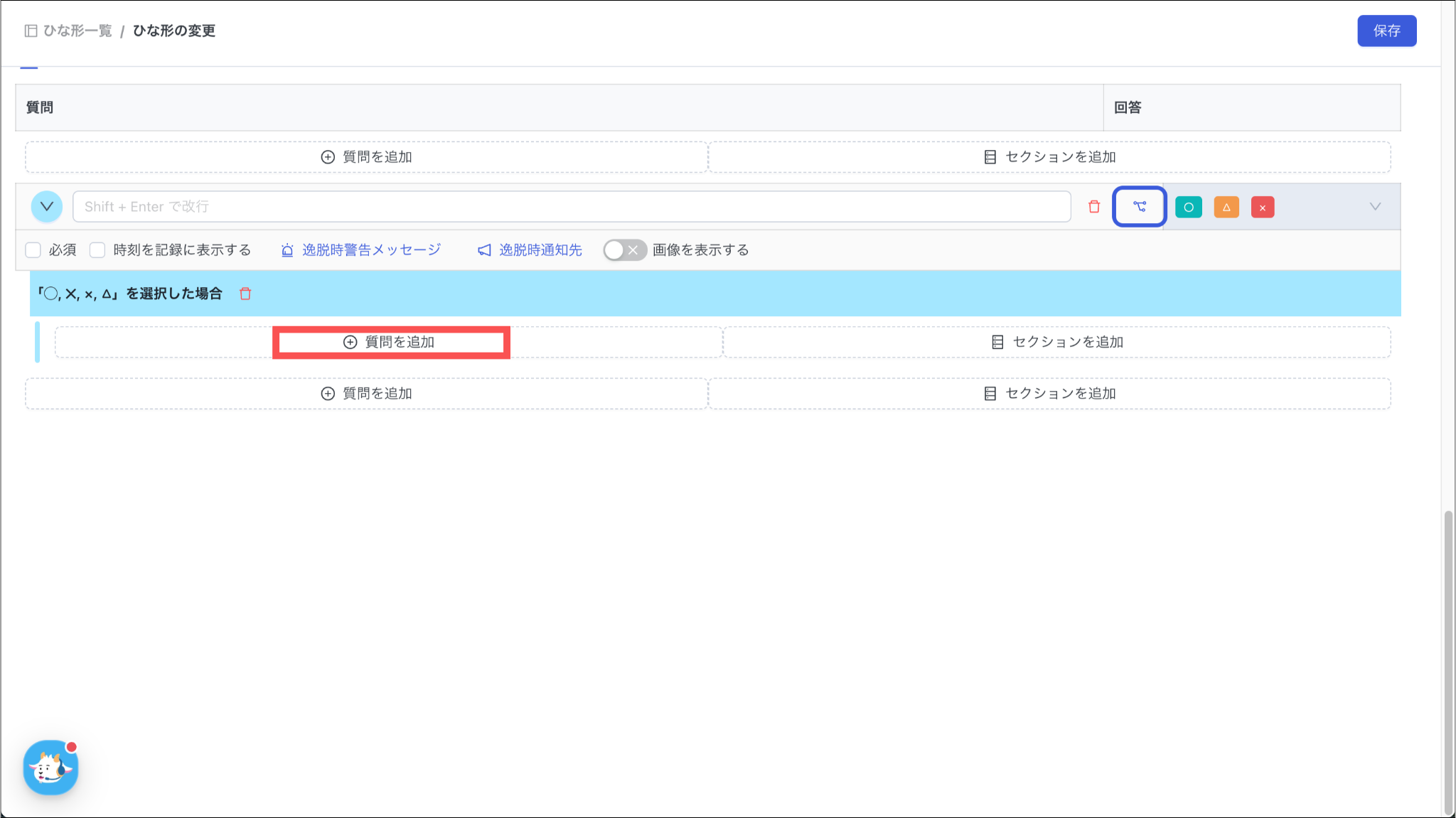 あらかじめ「逸脱」の設定をしているときは、「正常」か「逸脱」かのどちらかによって、次の質問を出すように設定することもできます。