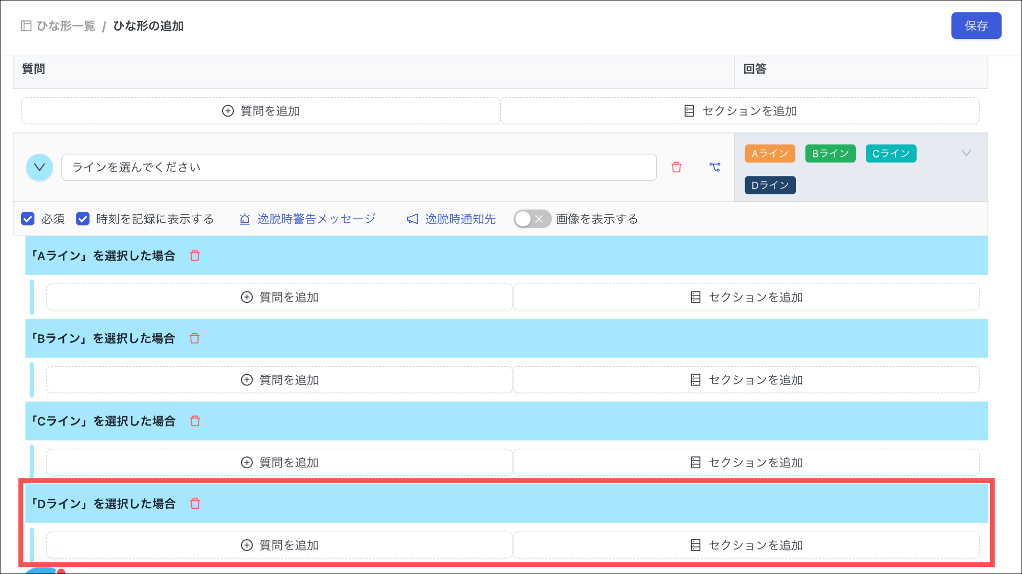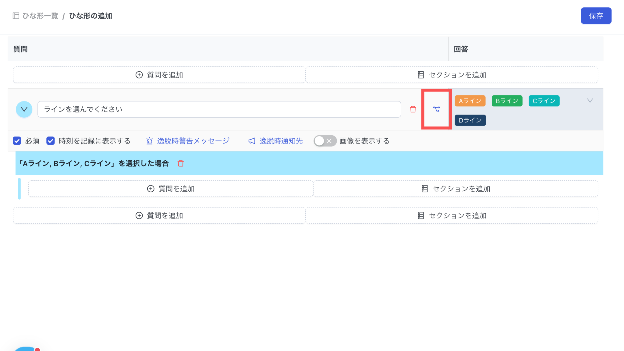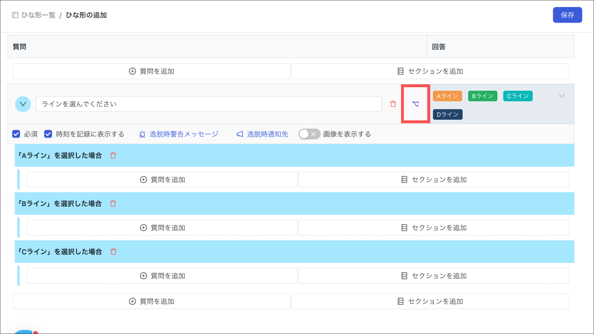 ※選択肢を追加することができるのみで、別の分岐先に設定することはできません。
