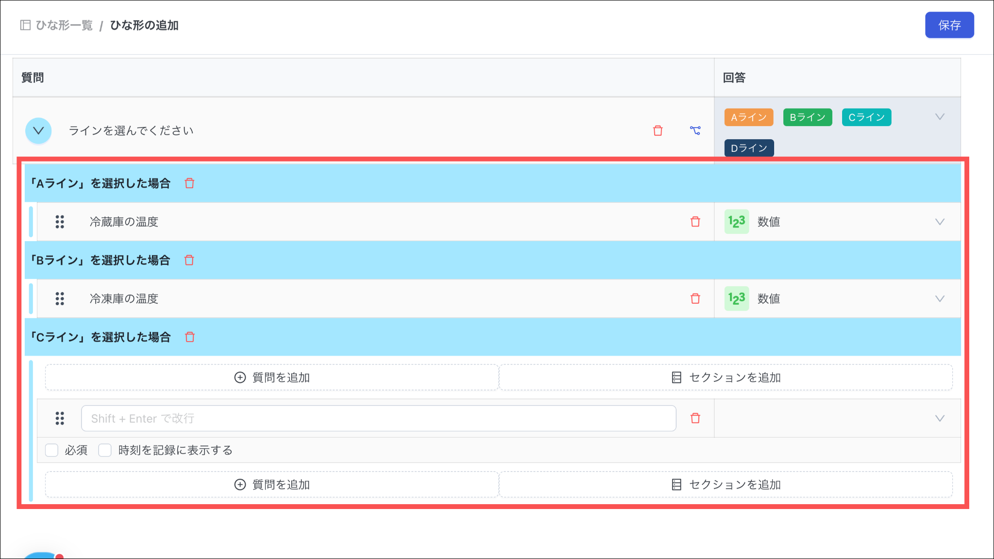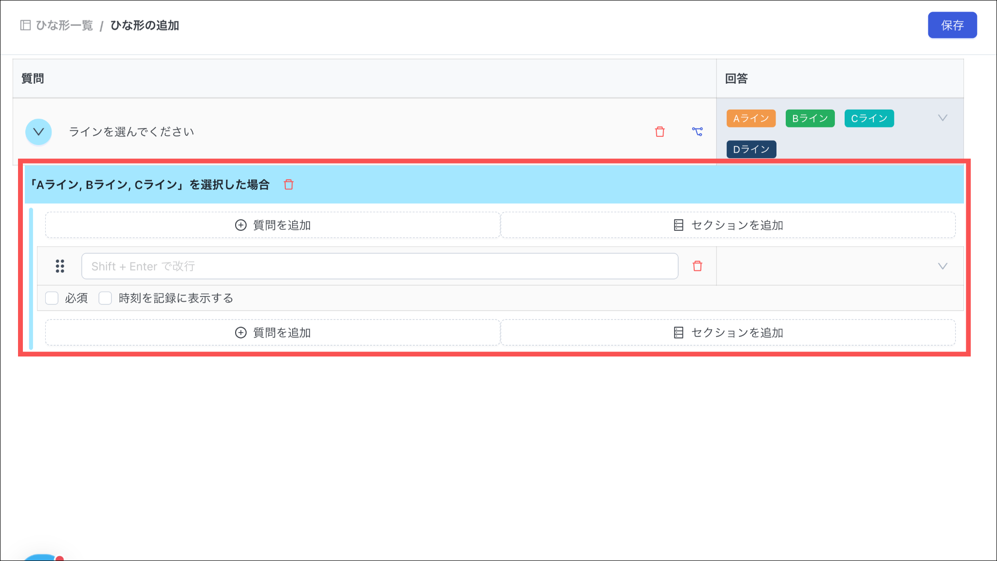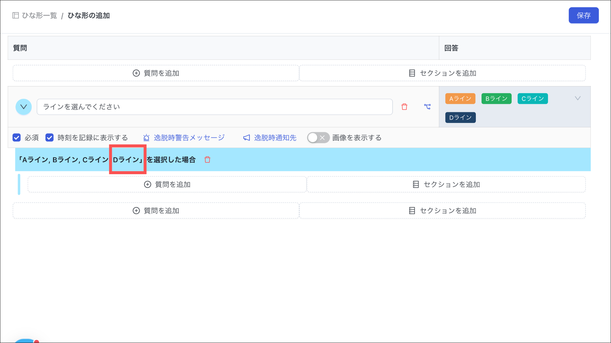 ※選択肢を追加することができるのみで、別の分岐先に設定することはできません。