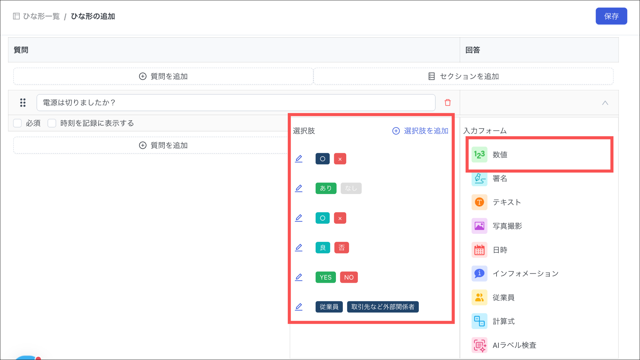 設定すると選択肢を追加することができます。