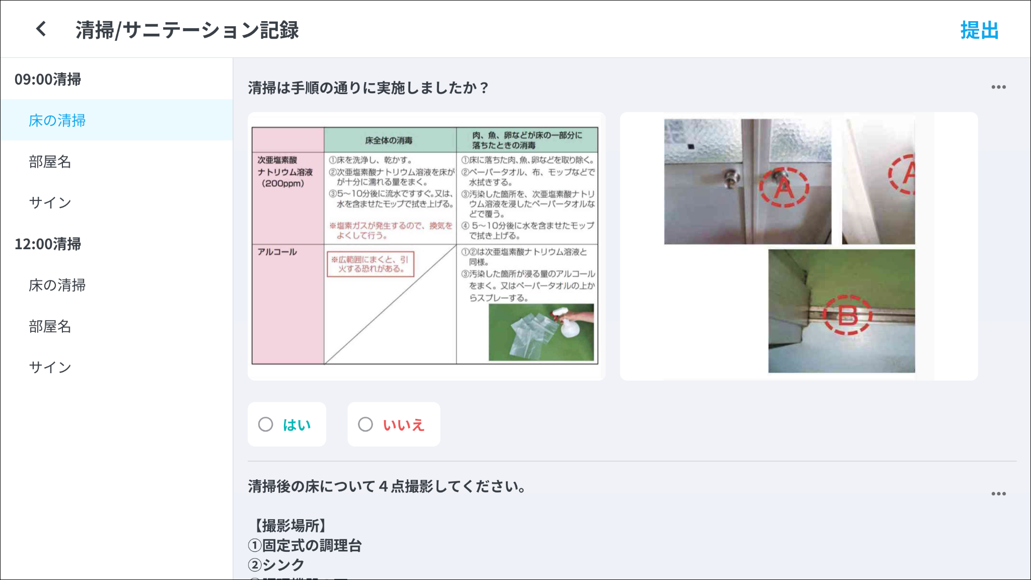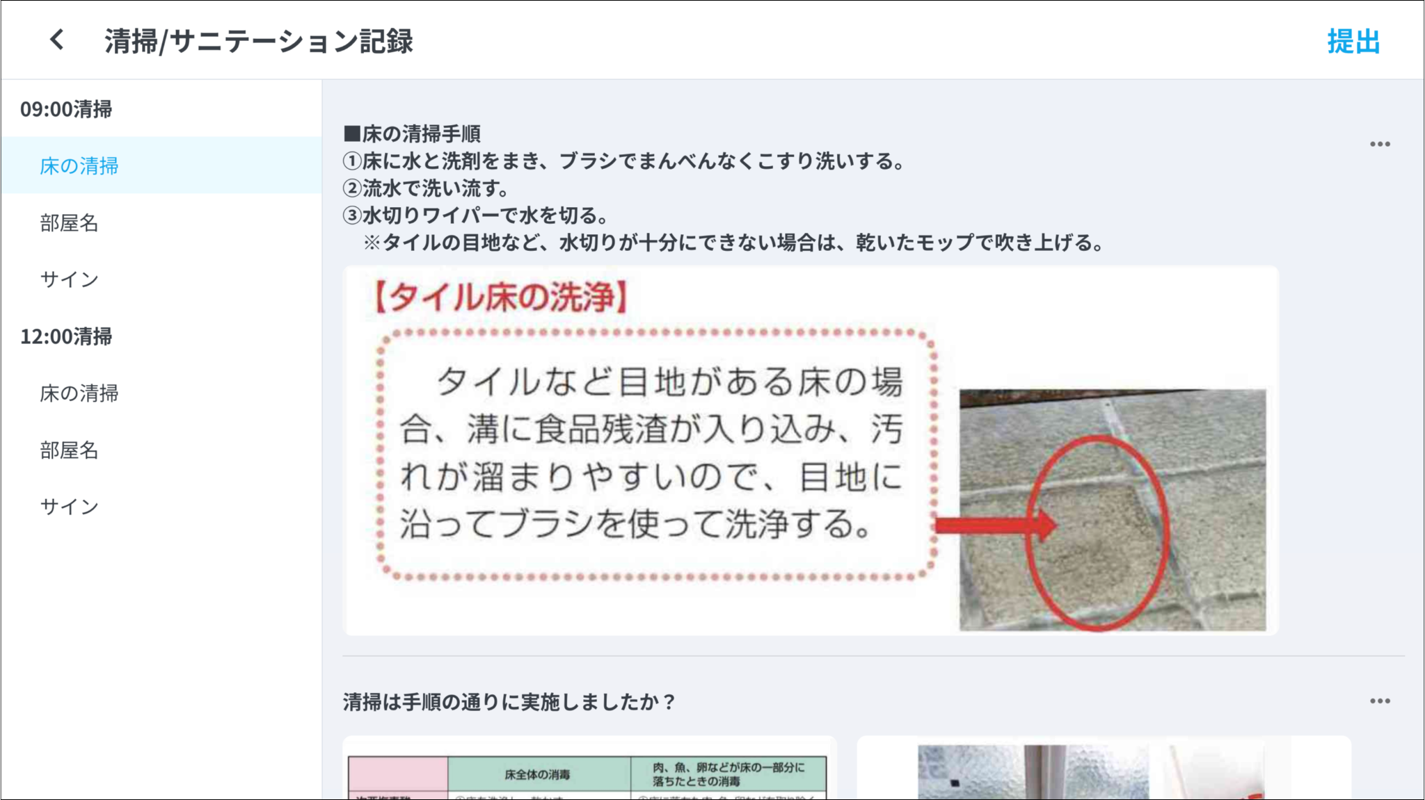 写真で記録することで、目指すべき状態(マニュアル)と作業結果のギャップが誰の目にも明らかになり、記録することが習慣化すれば、普段の作業レベルの向上を促すことができます。