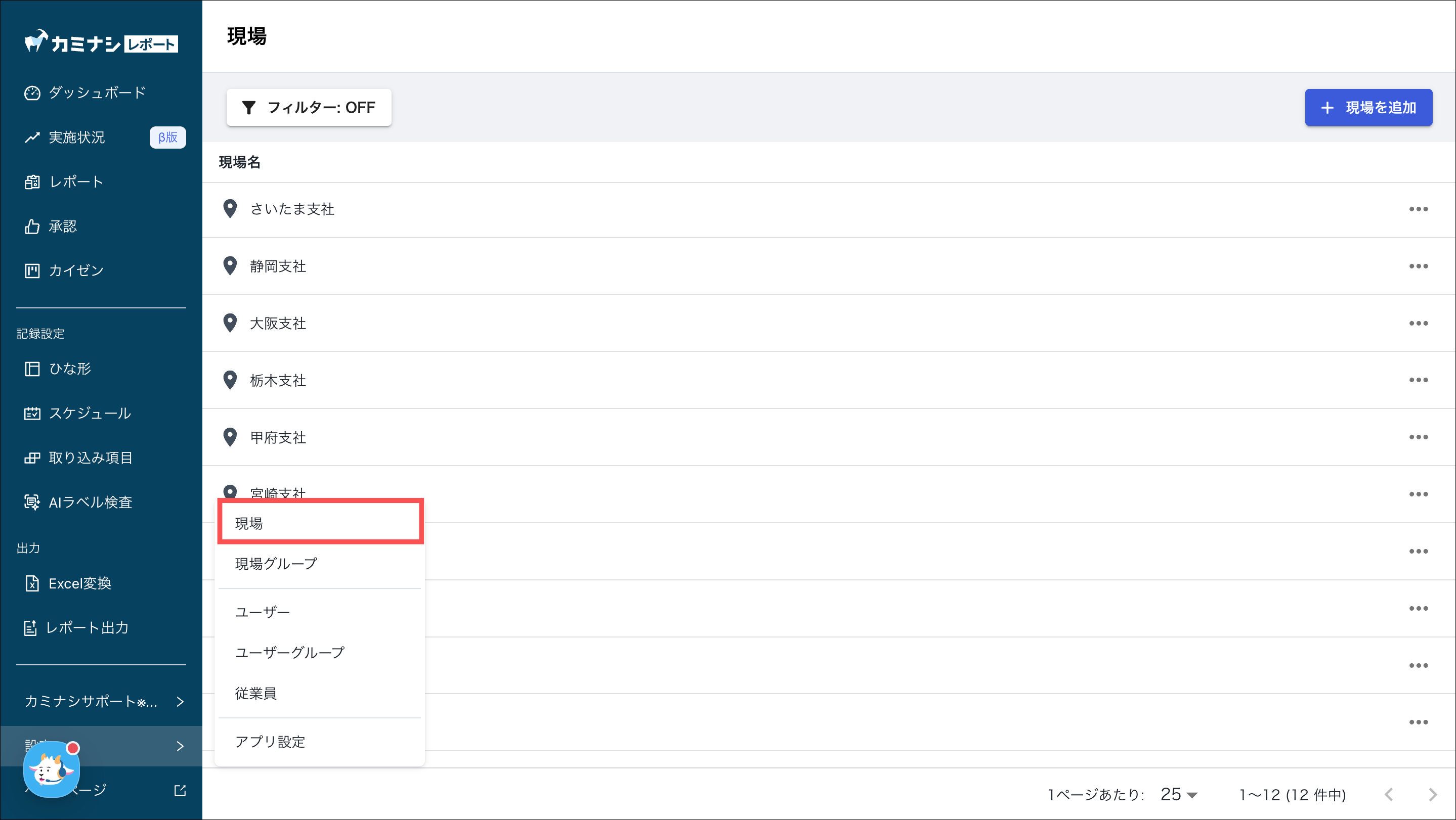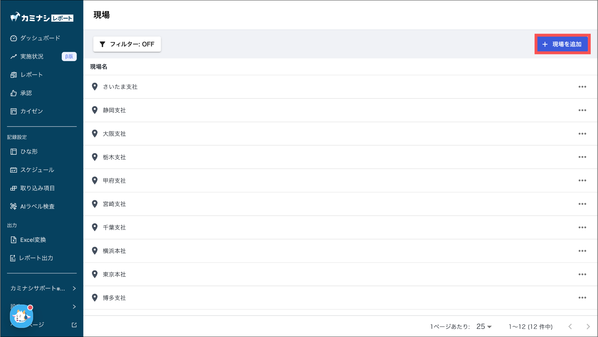 3.「+現場を追加」を押す