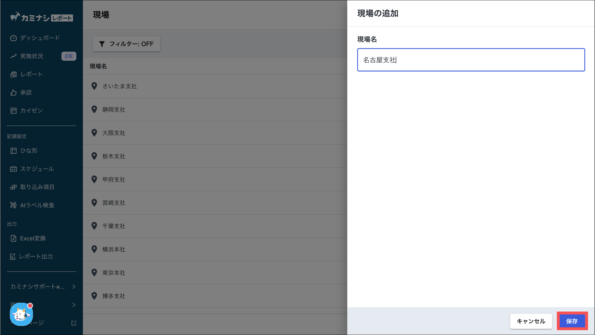 4.現場名を入力し、「保存」を押す