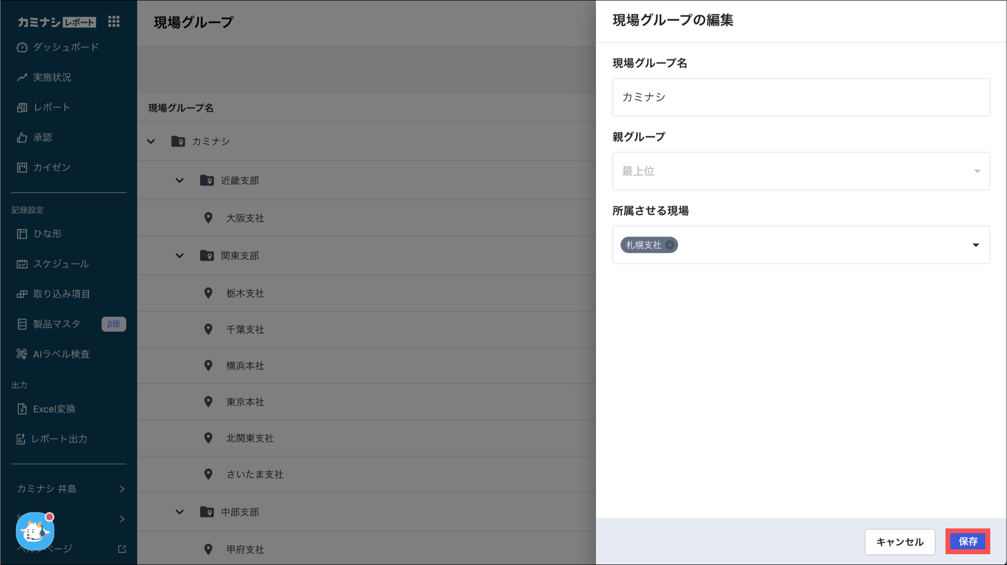 1.カミナシレポート 管理画面にログインする2.「設定」を押し、「現場グループ」を選択する3.編集したい現場グループを押す4.現場グループ情報を編集し、「保存」を押すよくある質問は、こちらからご確認ください。