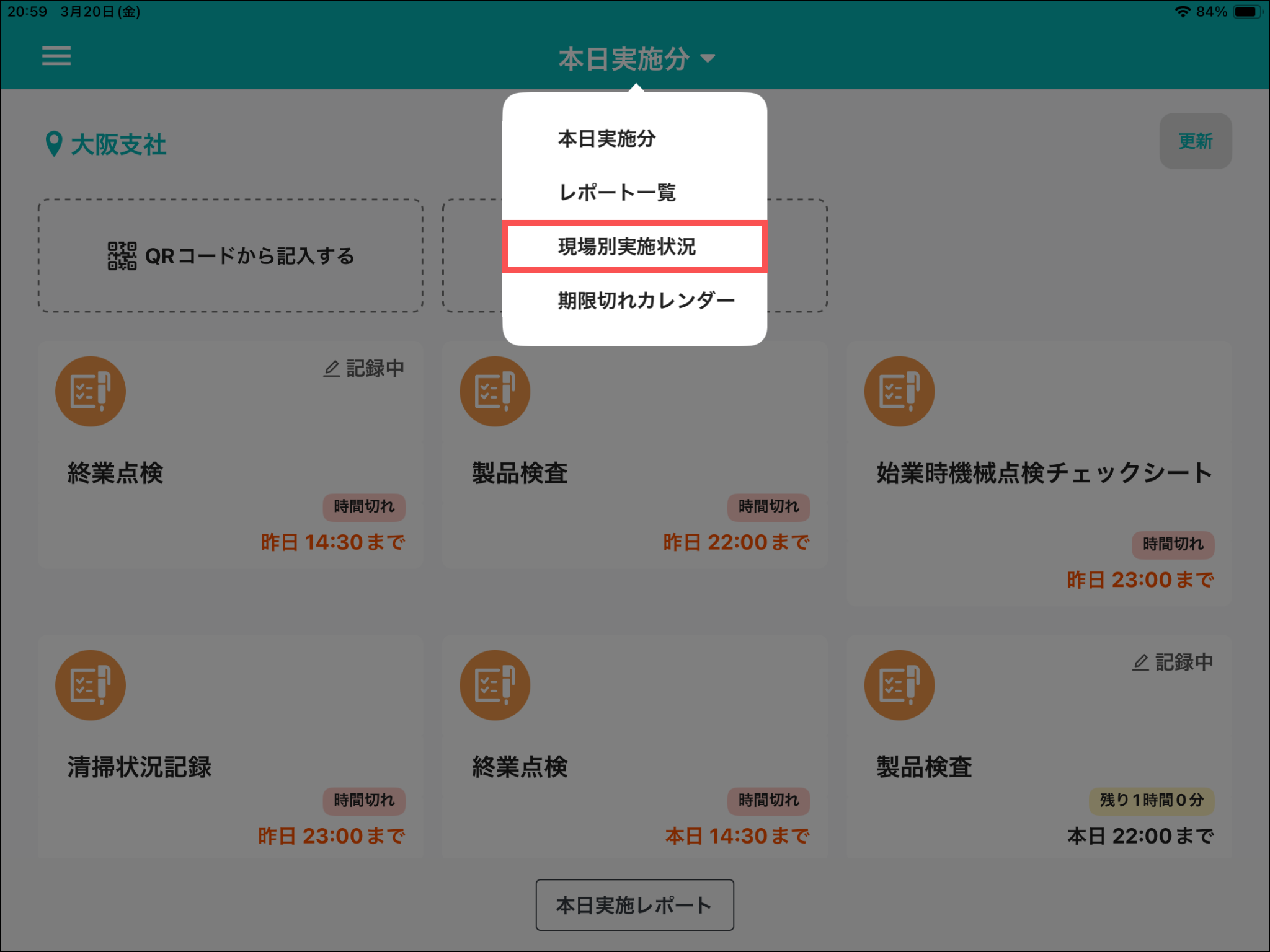 ひな形からレポートを作成した場合は、現場別実施状況に表示されません。