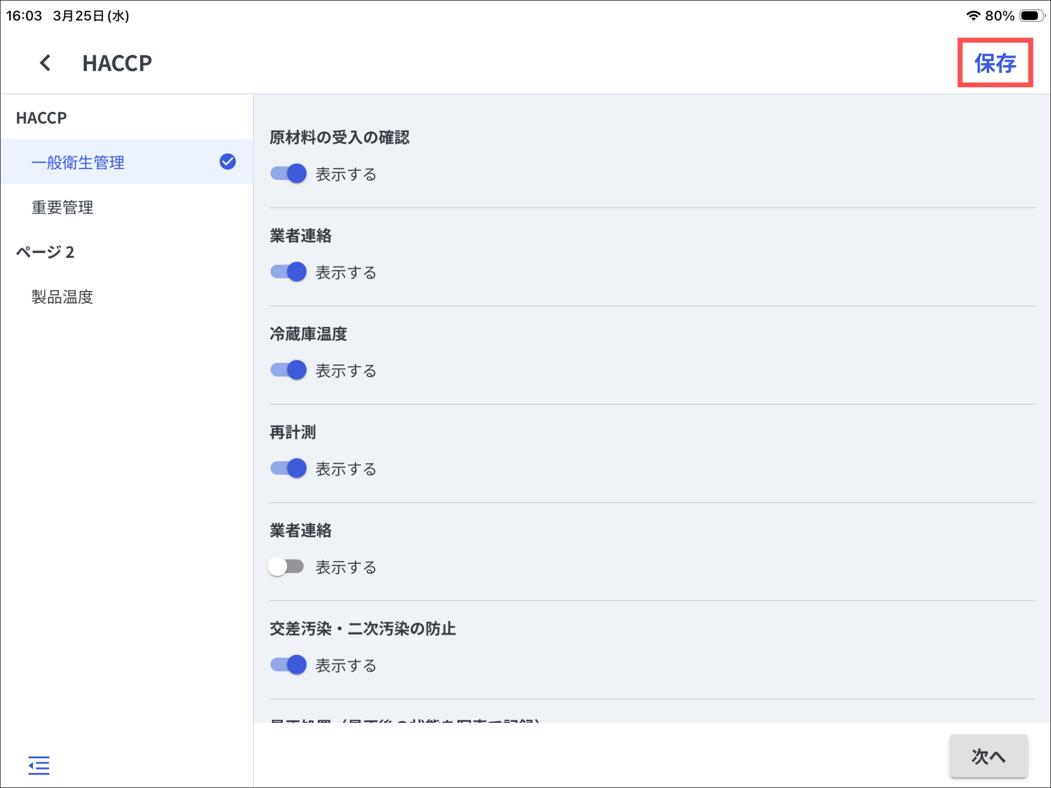 また、ここで非表示にした質問はレポート記録時だけでなく、レポート詳細画面にも表示されません。