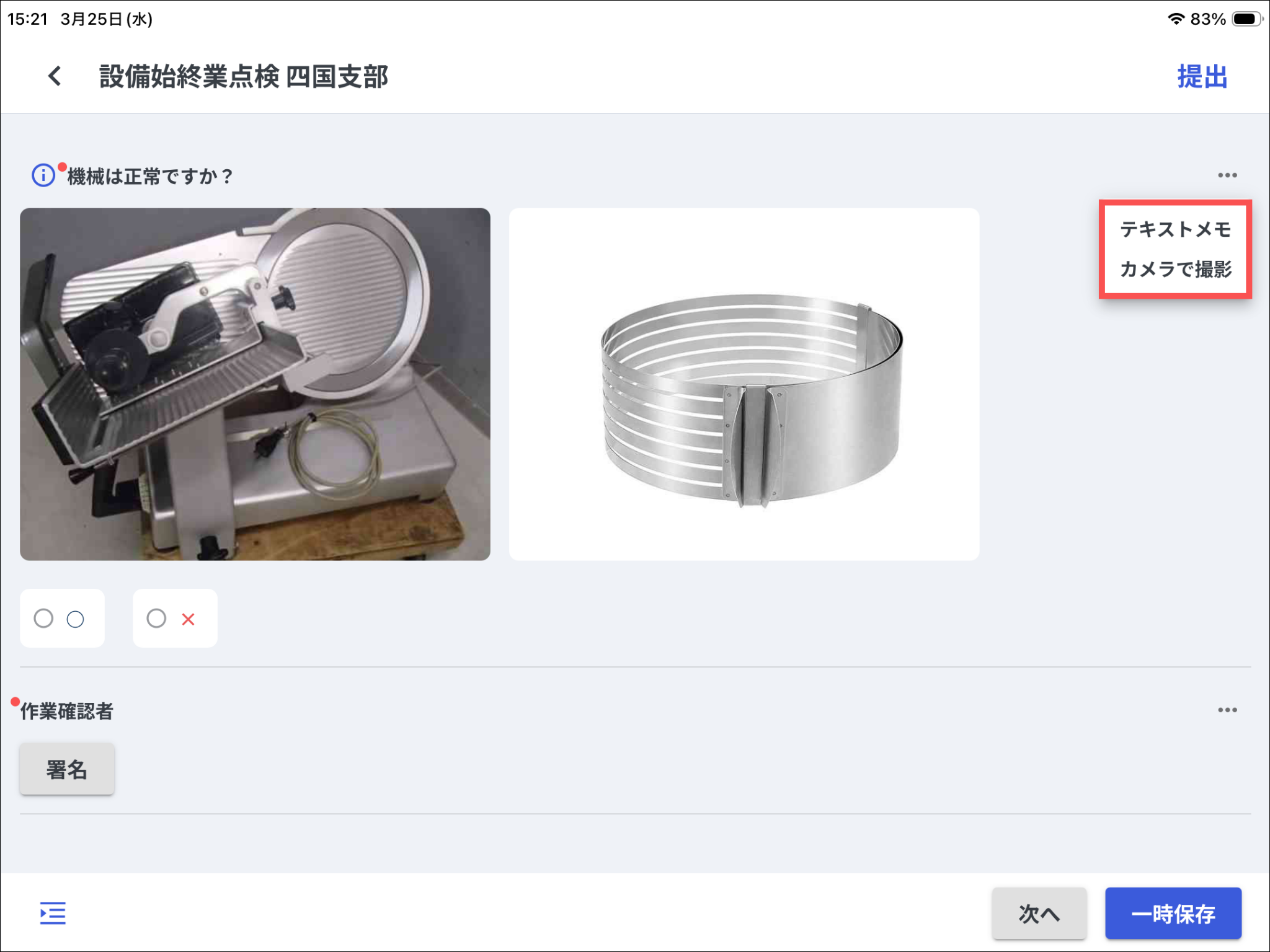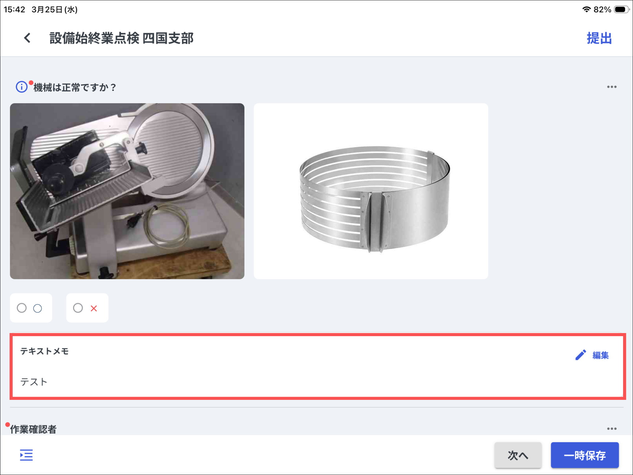 また、写真メモの場合、画像を押すと全画面表示され、◯やチェックなど手書きで記入することができます。