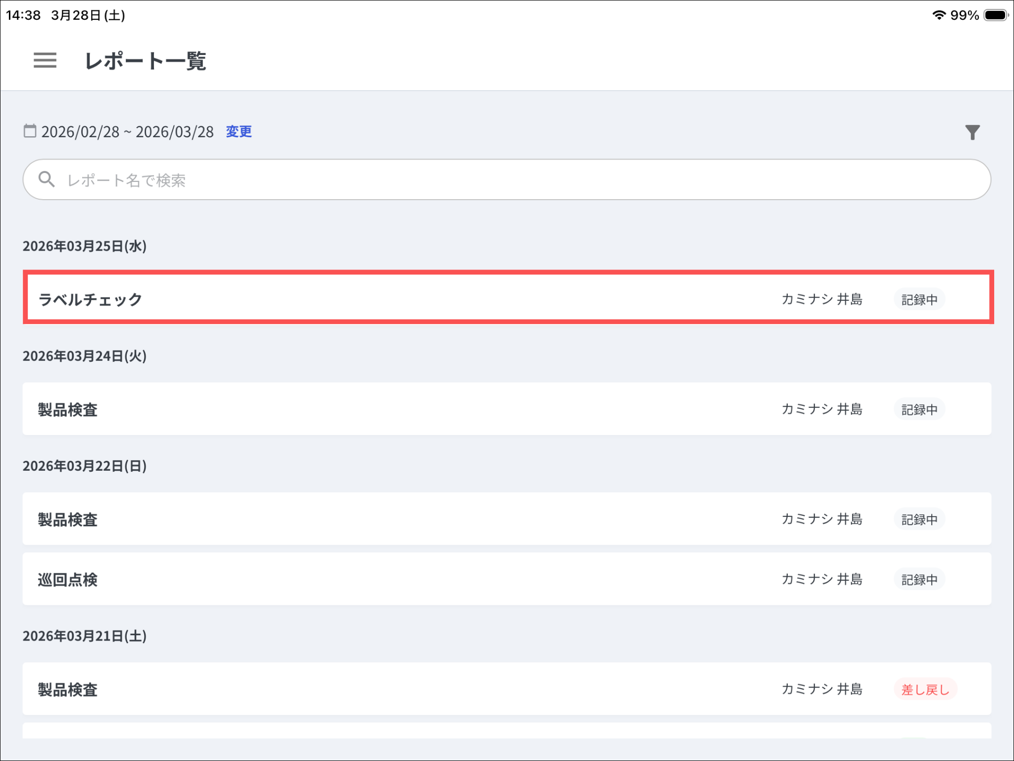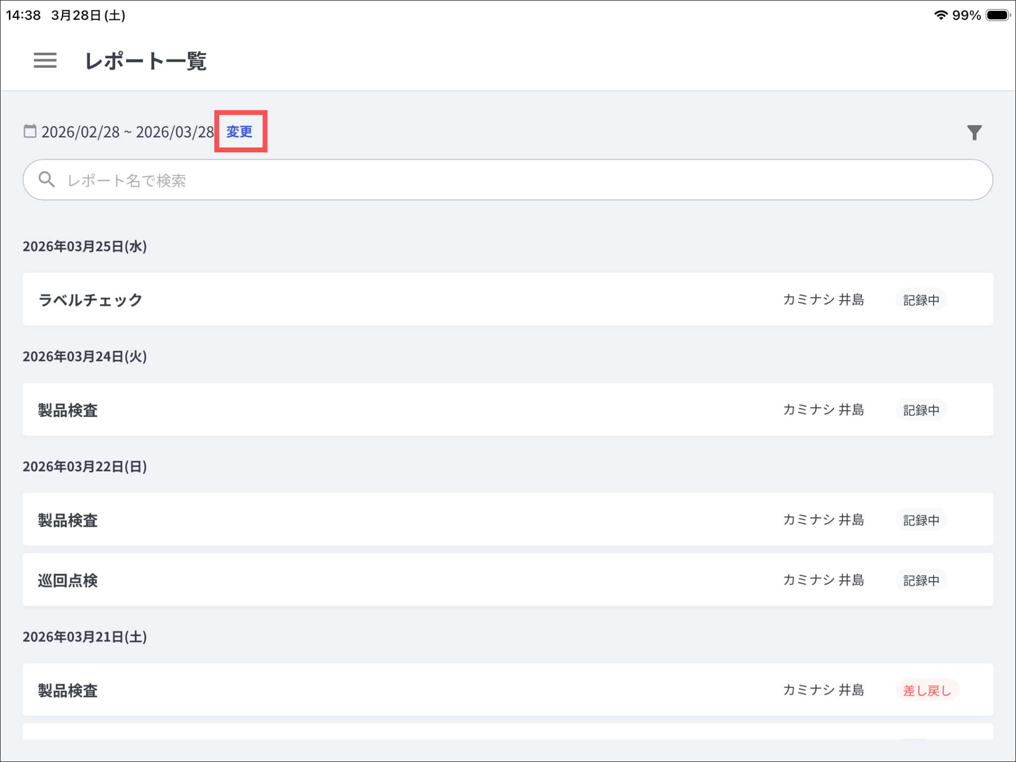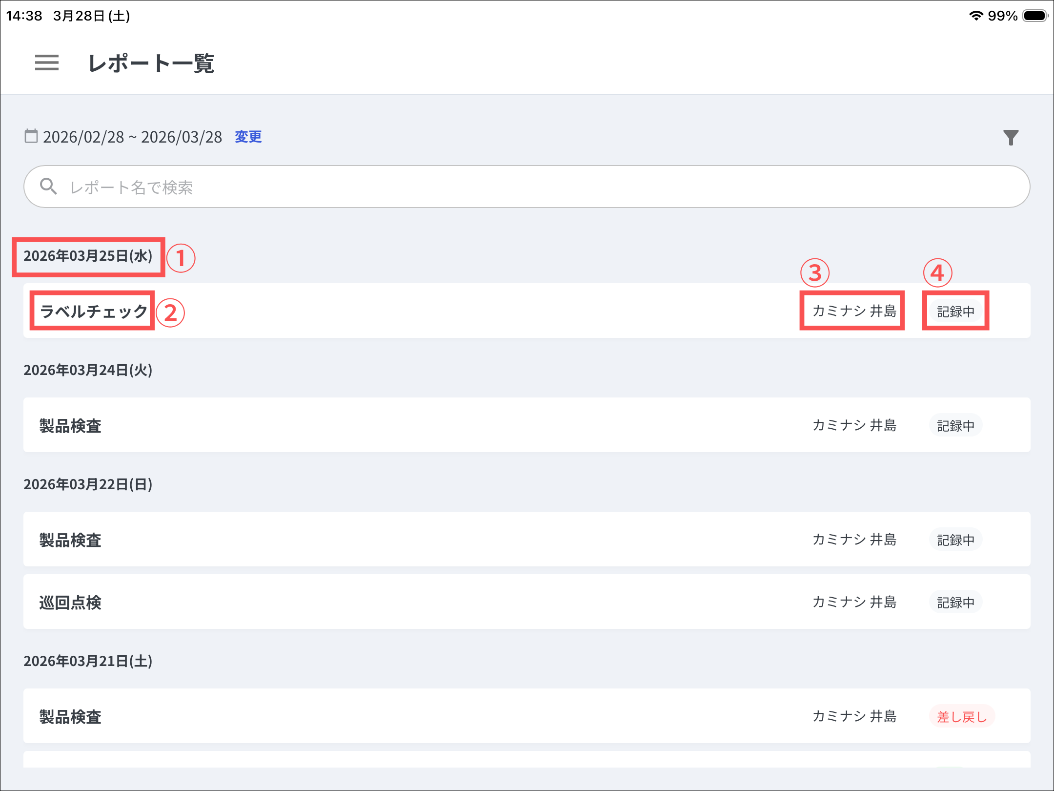 レポートをいつ記録したのか、以下のルールに沿って日付が表示されます。