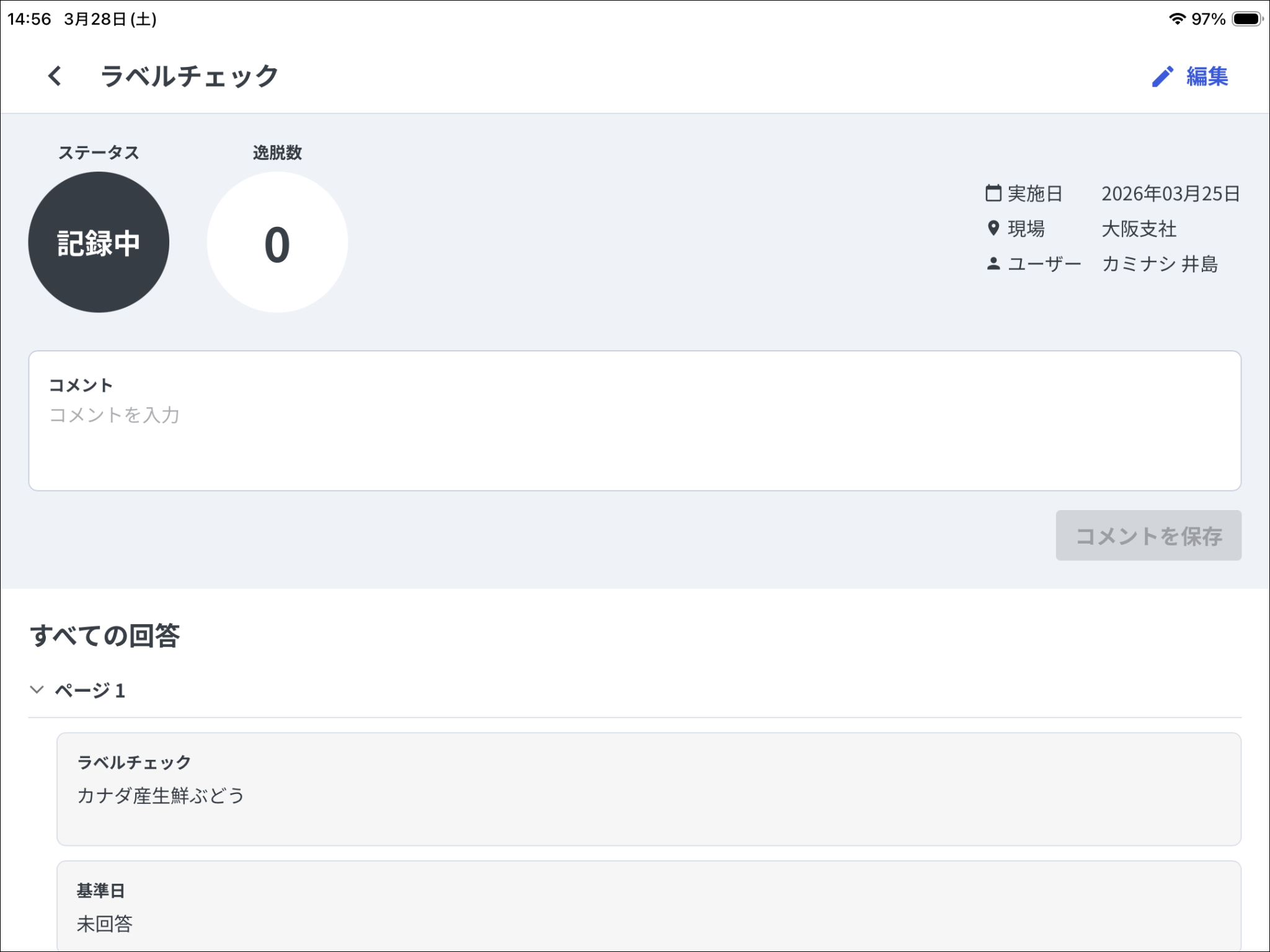 レポートを最初に保存(一時保存・提出)したユーザーの名前が表示されます。