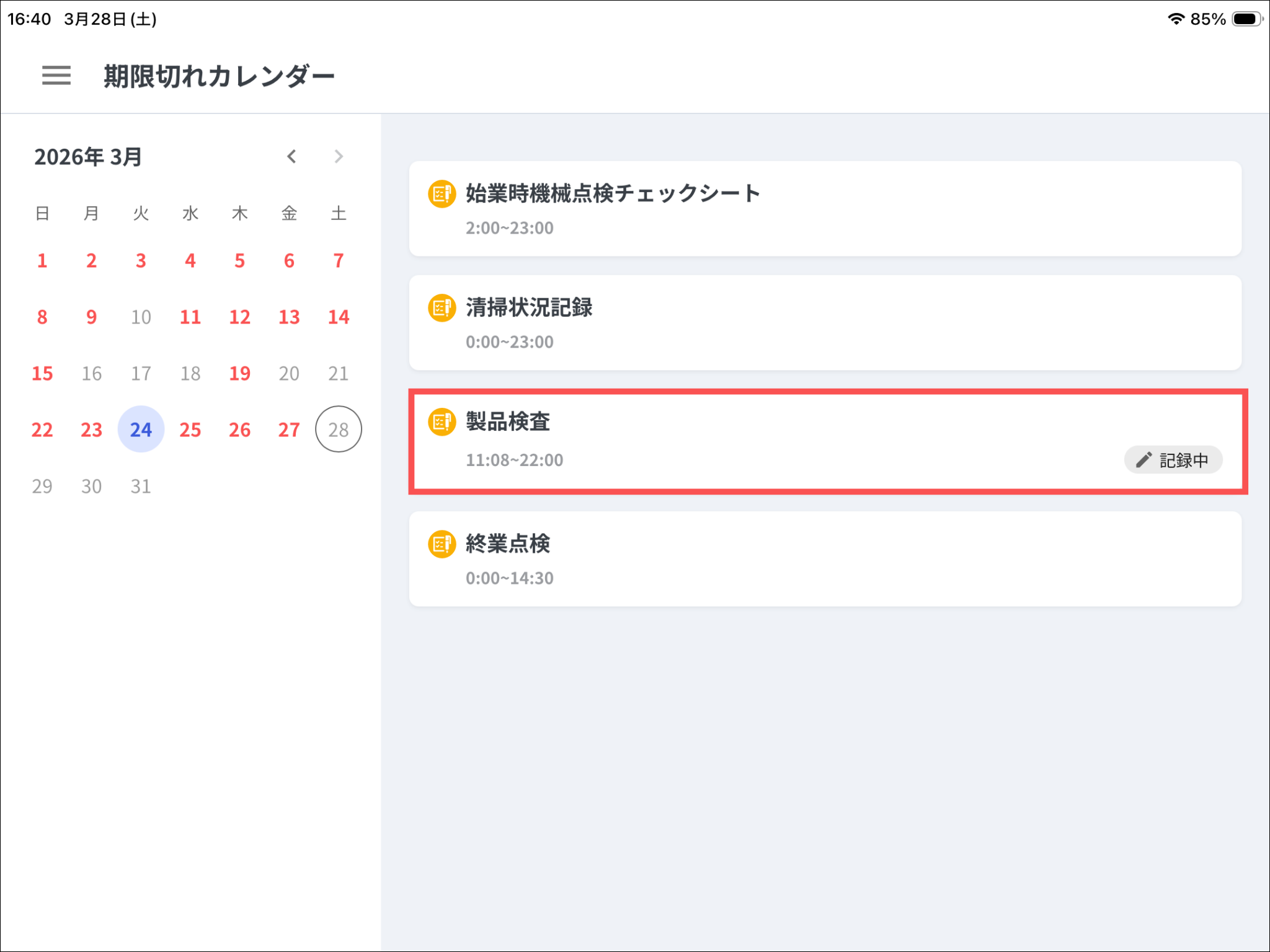三本線を押して 、「期限切れカレンダー」を開きます。