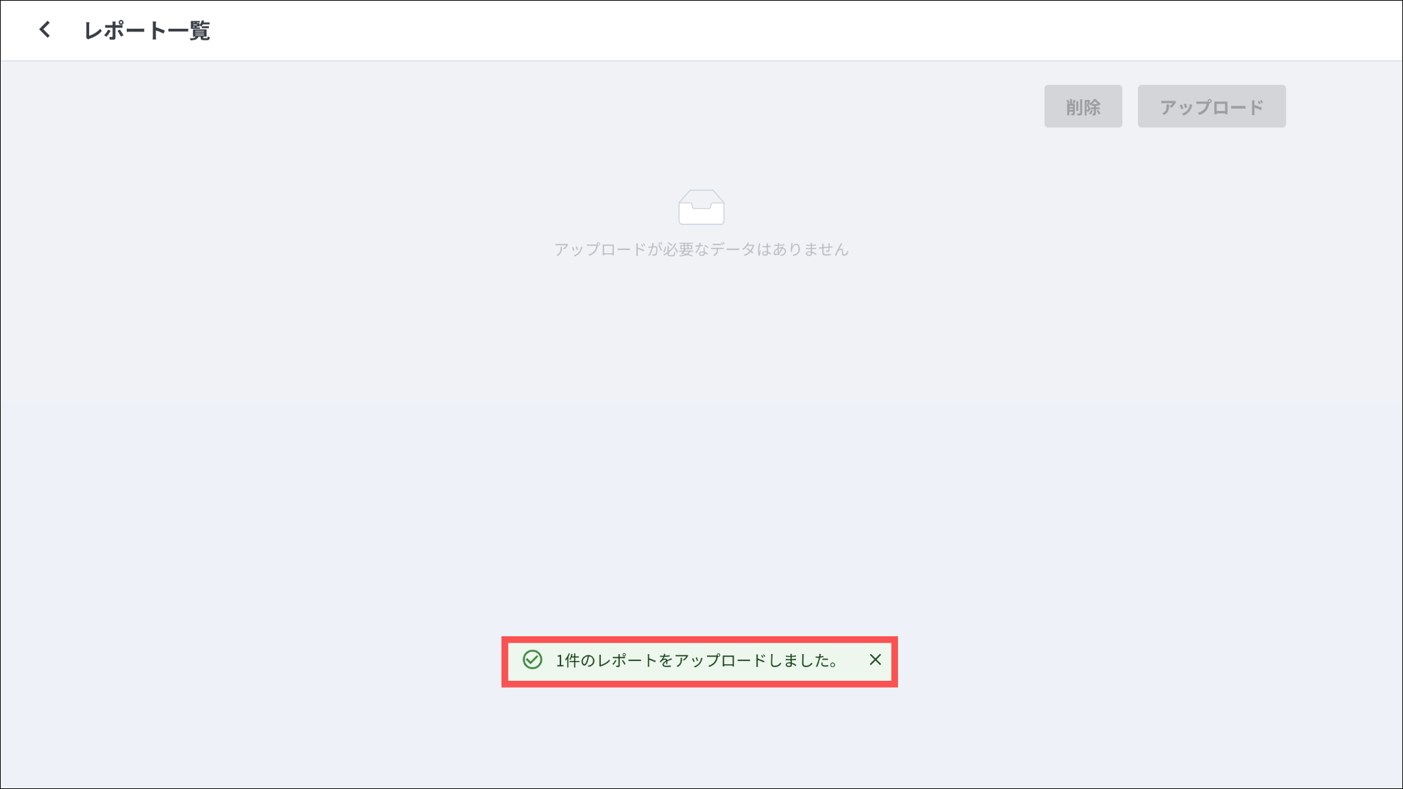 「○件のレポートをアップロードしました」と表示され、アップロード完了となります。