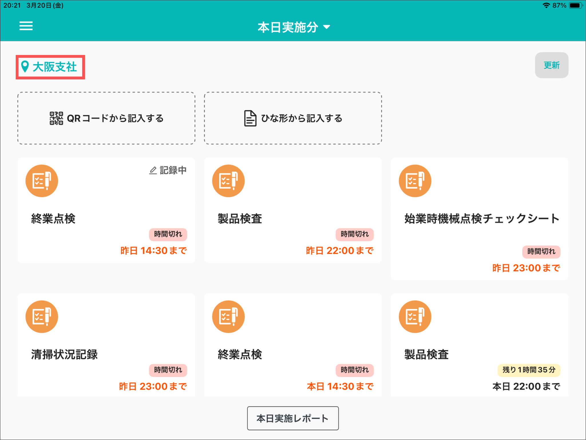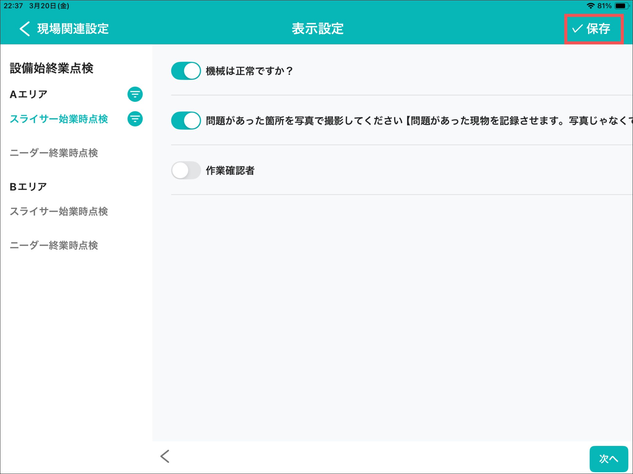 また、ここで非表示にした質問はレポート記録時だけでなく、レポート詳細画面にも表示されません。