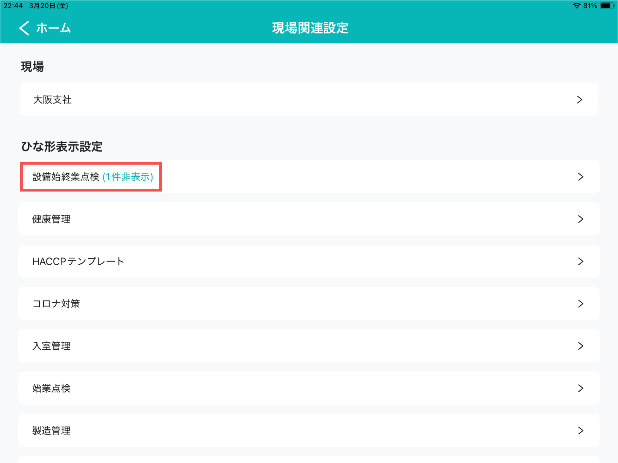 非表示に設定したひな形の横に(○件非表示)と表示されます。