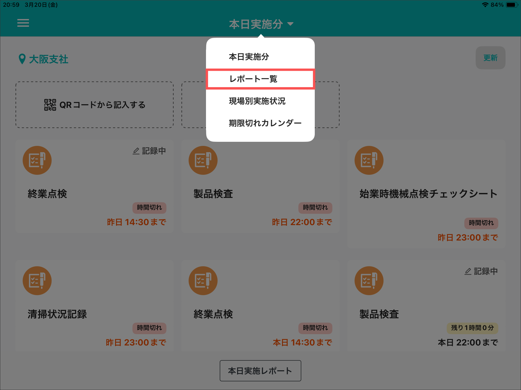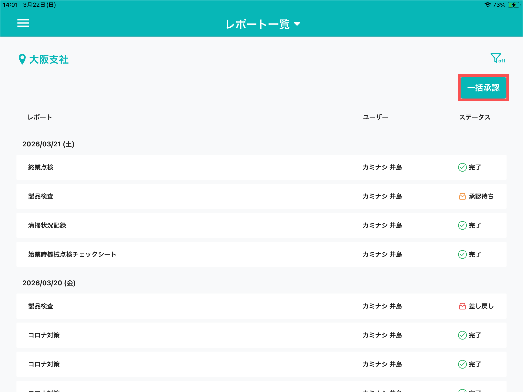 承認が必要な最近1か月分のレポートが自動で表示されます。