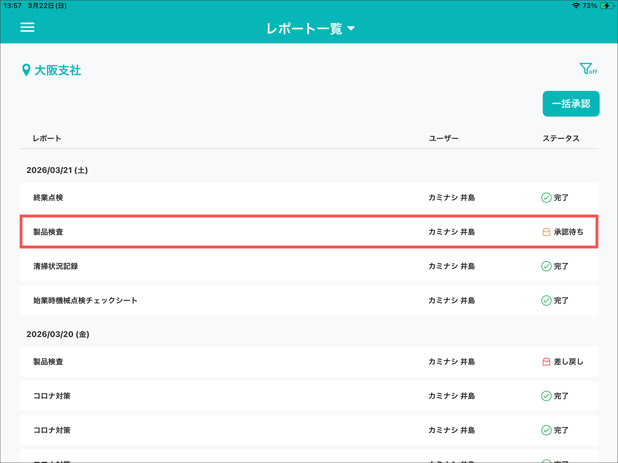 検索機能については、「記録アプリ(iOS/iPadOS)でレポート一覧を確認する:4.レポートを検索する」をご参照ください。