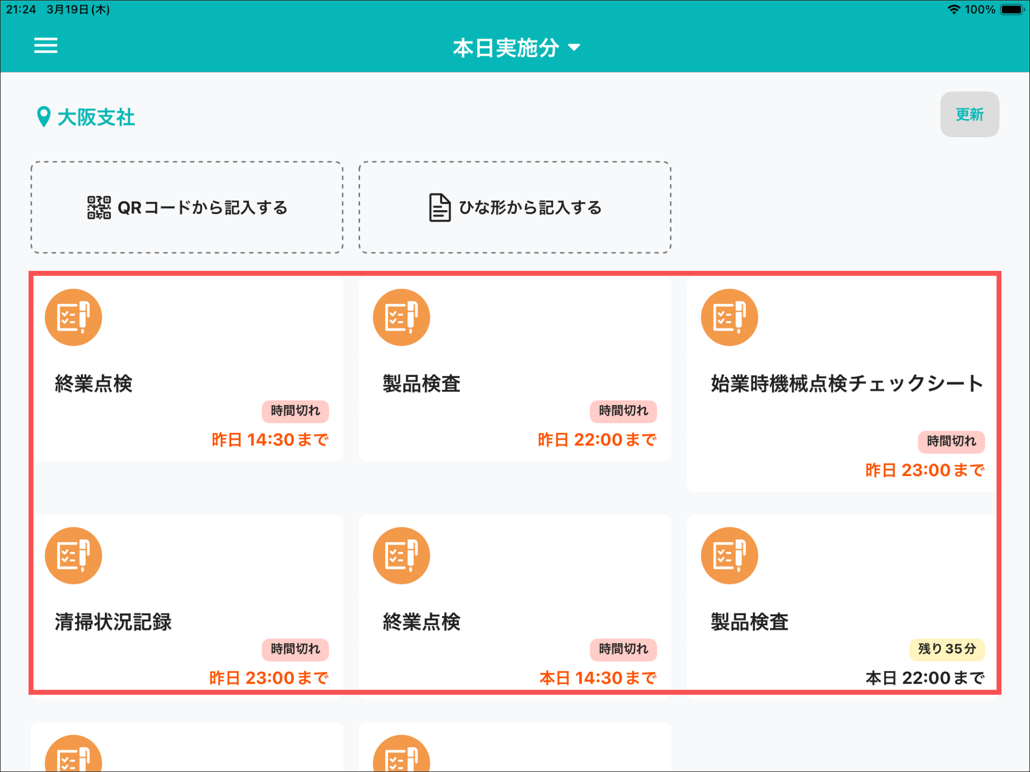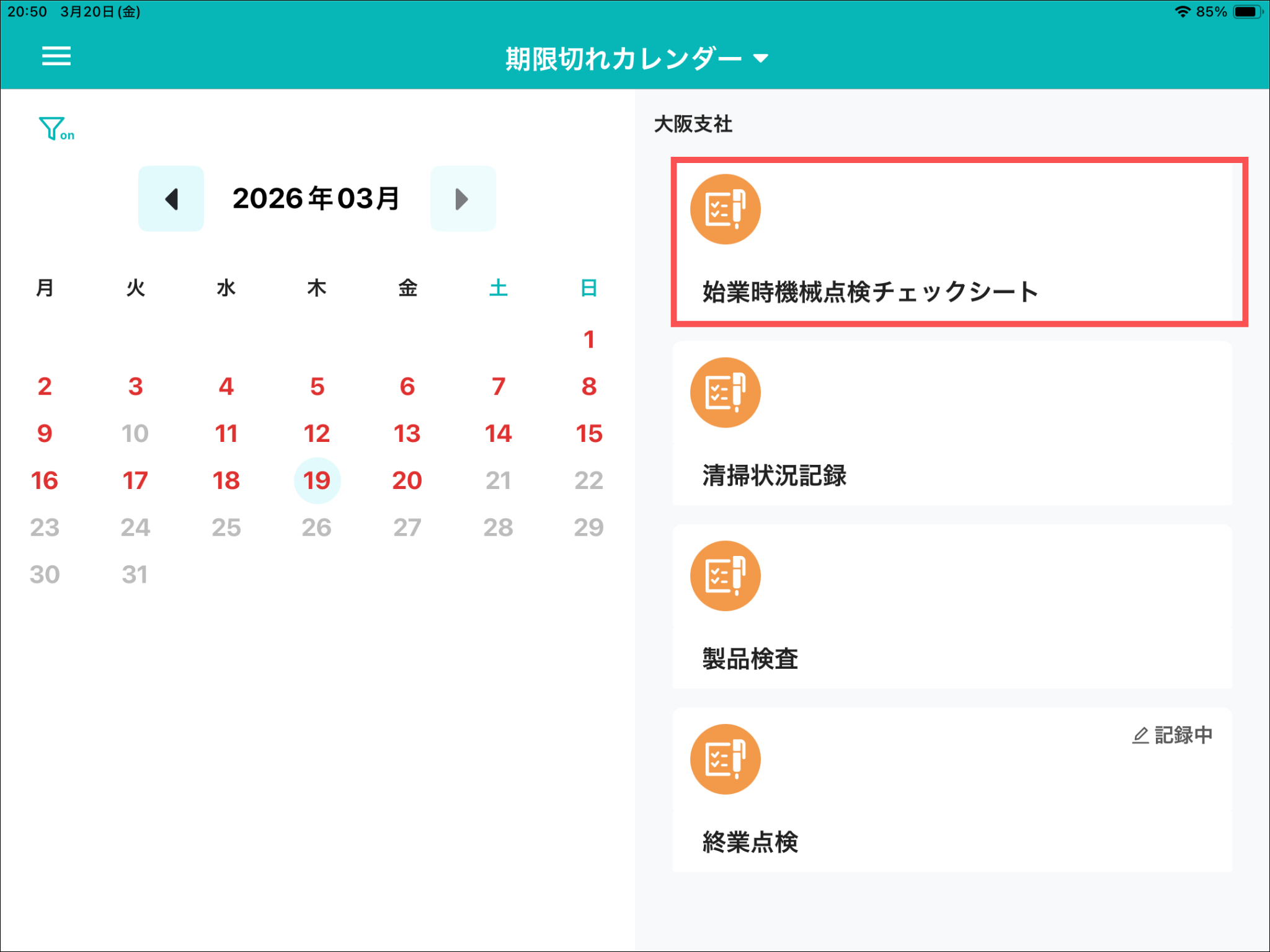 「本日実施分」を押して 、「期限切れカレンダー」を開きます。