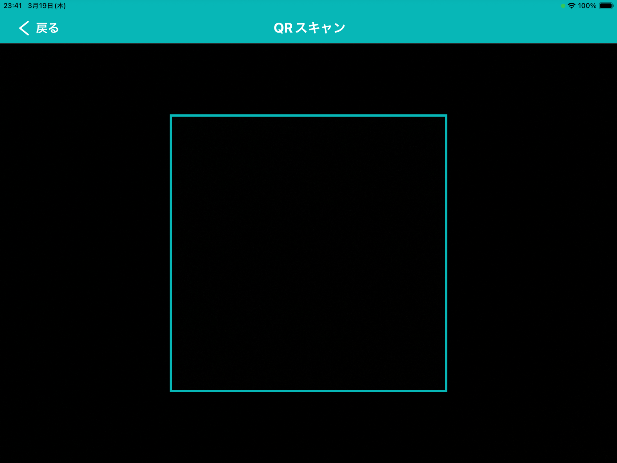 「QRコードから記入する」を押すと、QRコードをカメラで読み取る画面が立ち上がるため、あらかじめ用意しておいたQRコードを読み取ります。