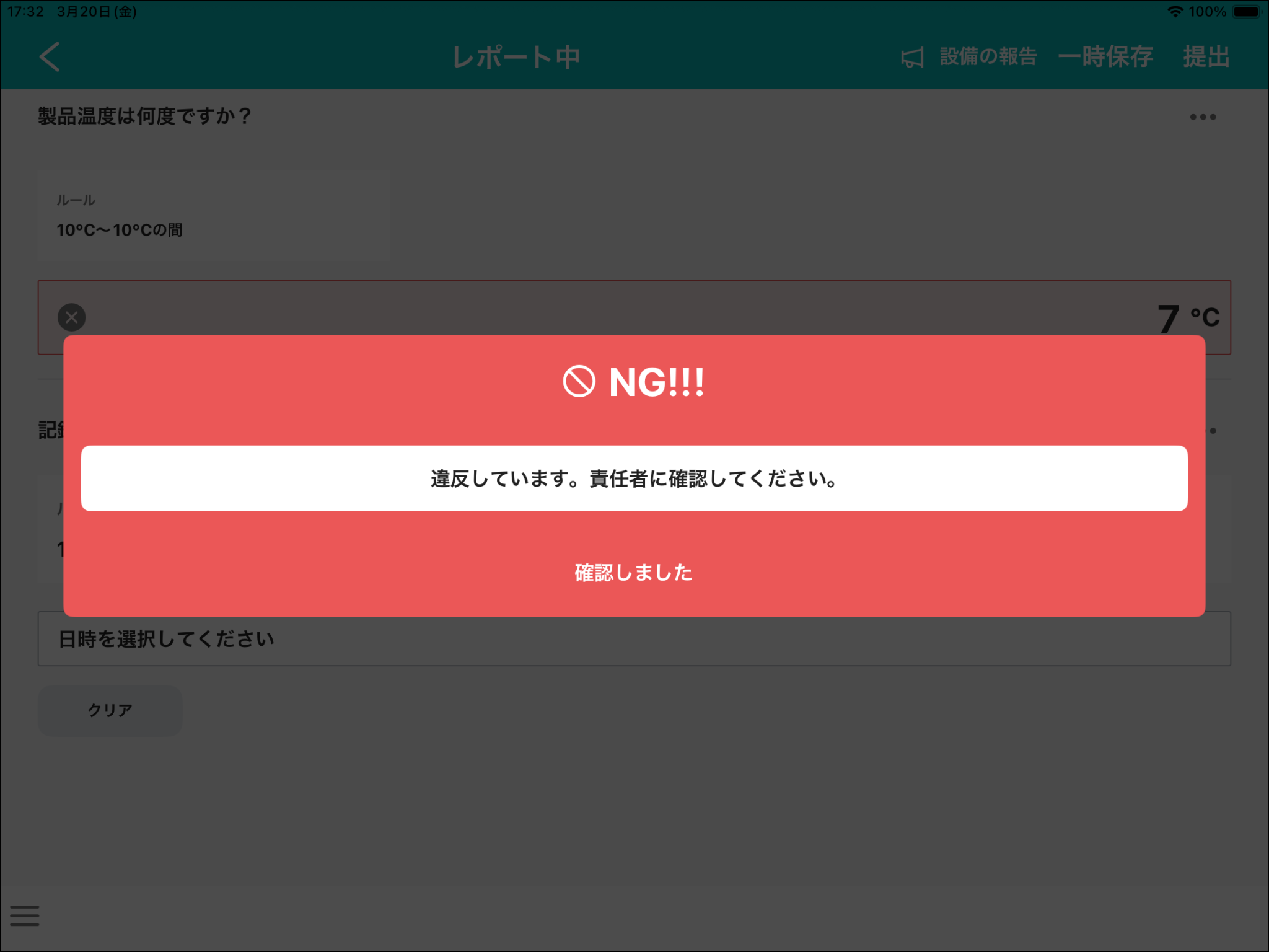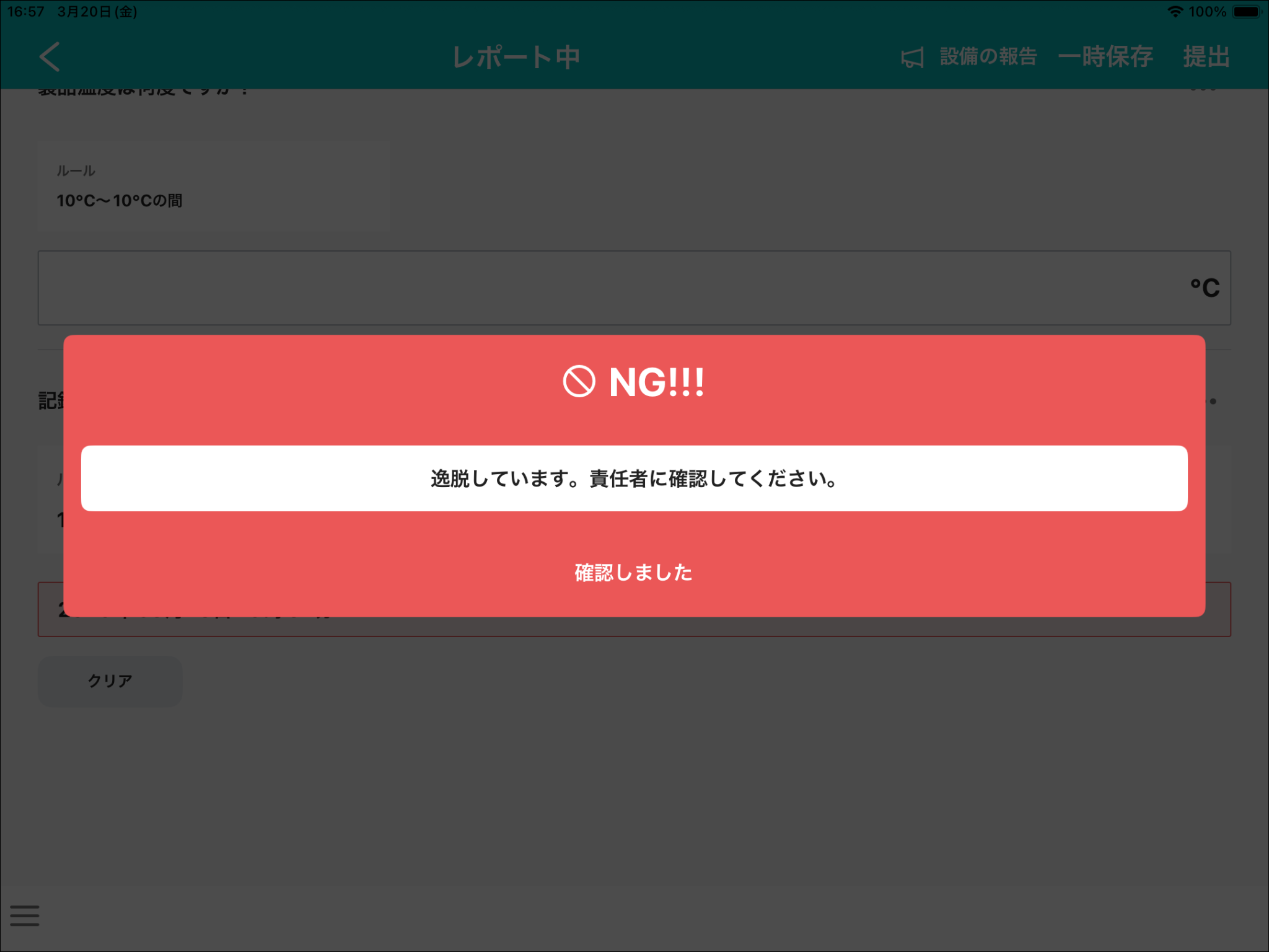 なお、逸脱がある状態でもレポートを一時保存または提出することができます。