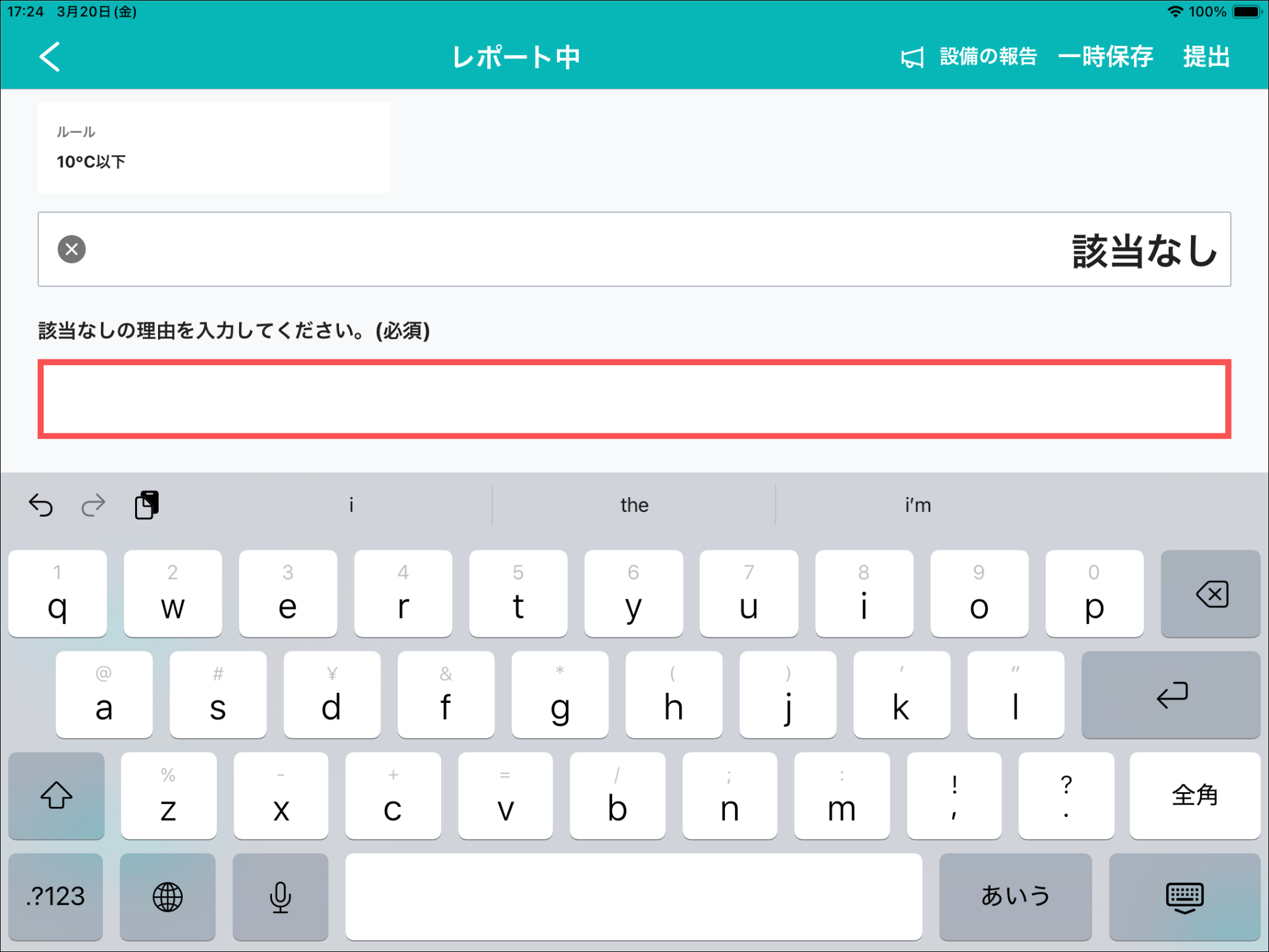 レポートの新規作成方法については、「記録アプリ(iOS/iPadOS)にて、レポートを新規作成する」をご参照ください。