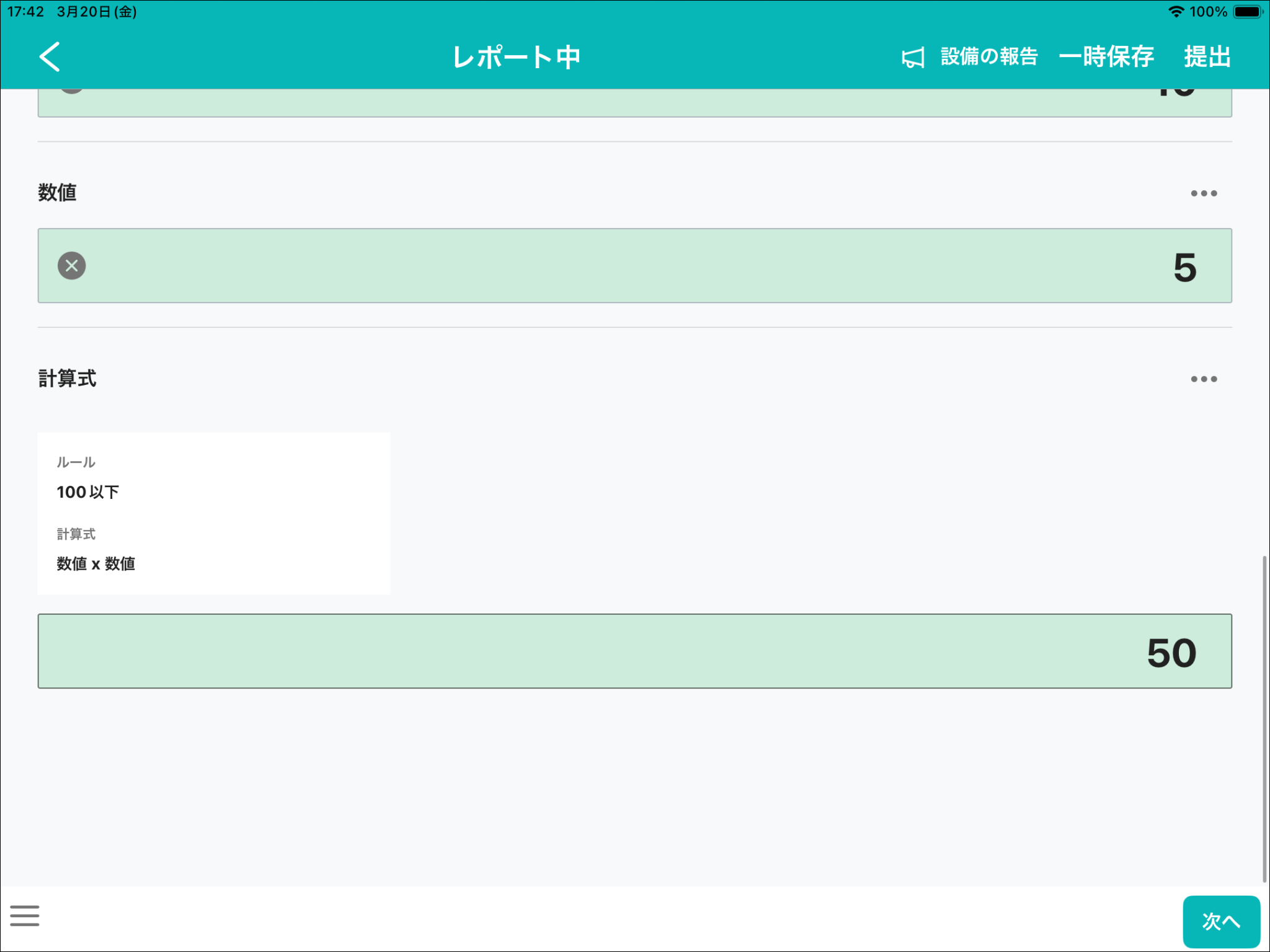 計算式に設定している回答形式が「数値」の質問に回答すると、自動的に計算結果が表示されます。