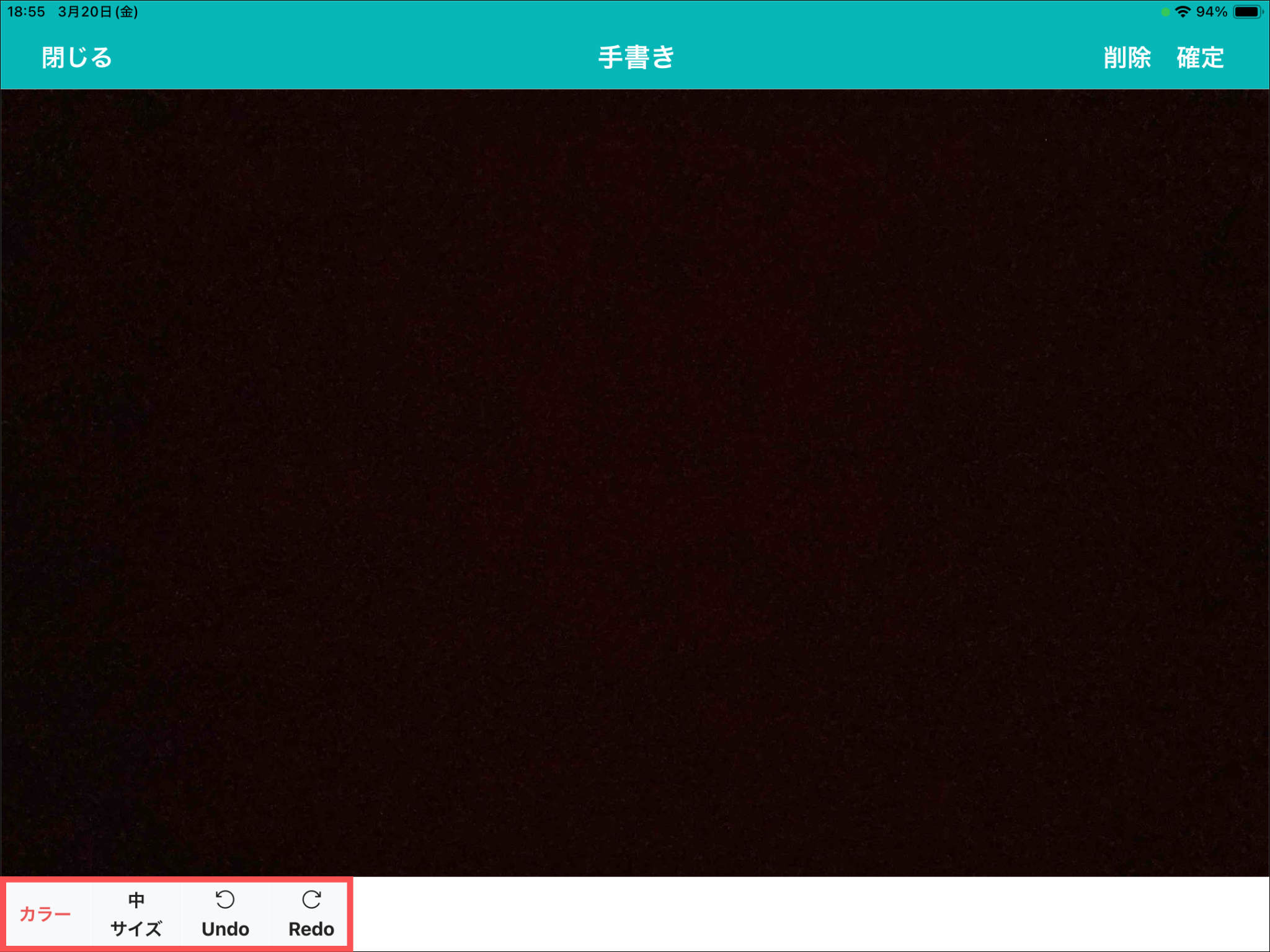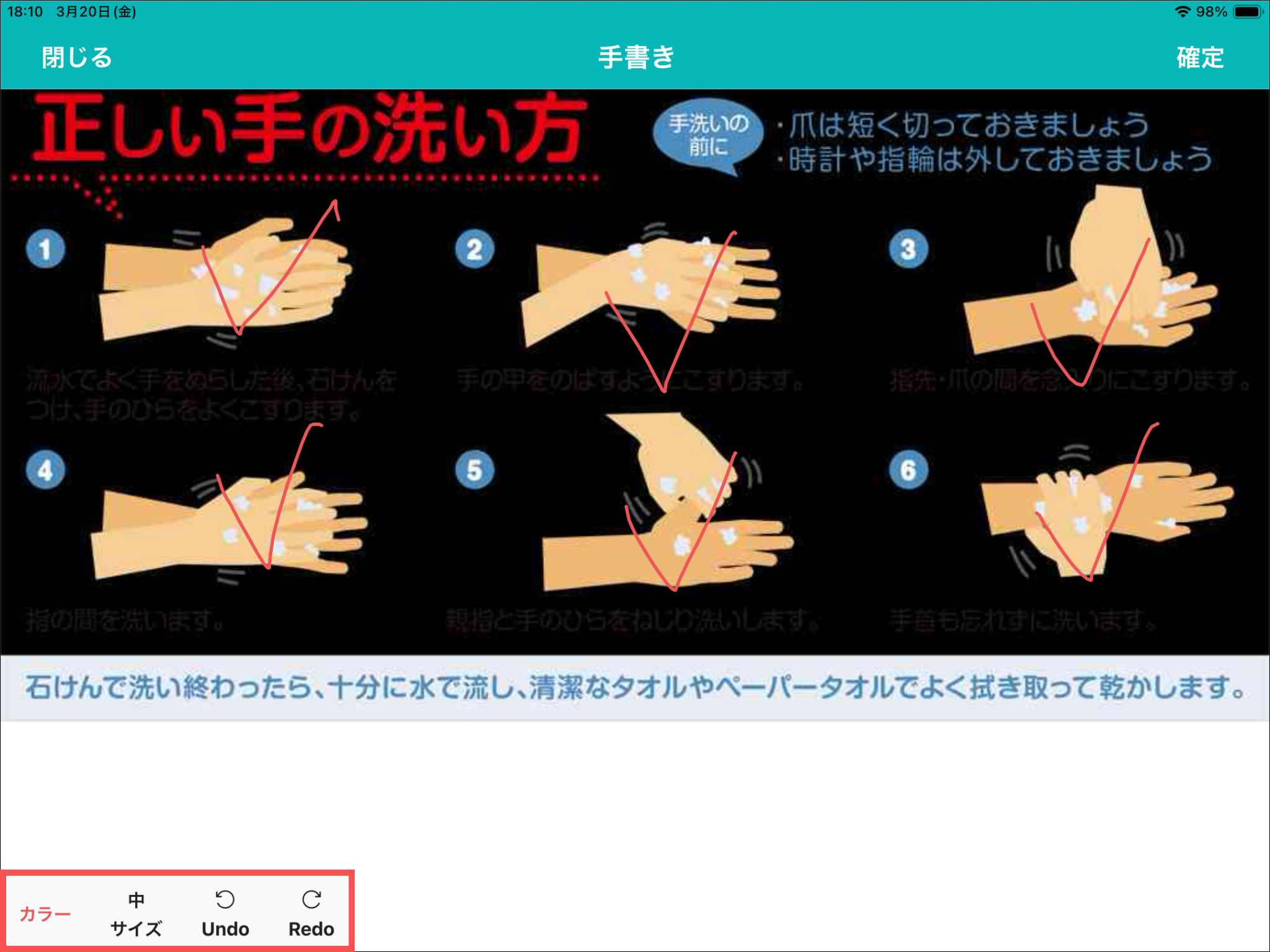 画像を押すと全画面表示され、◯やチェックなど手書きで記入することができます。