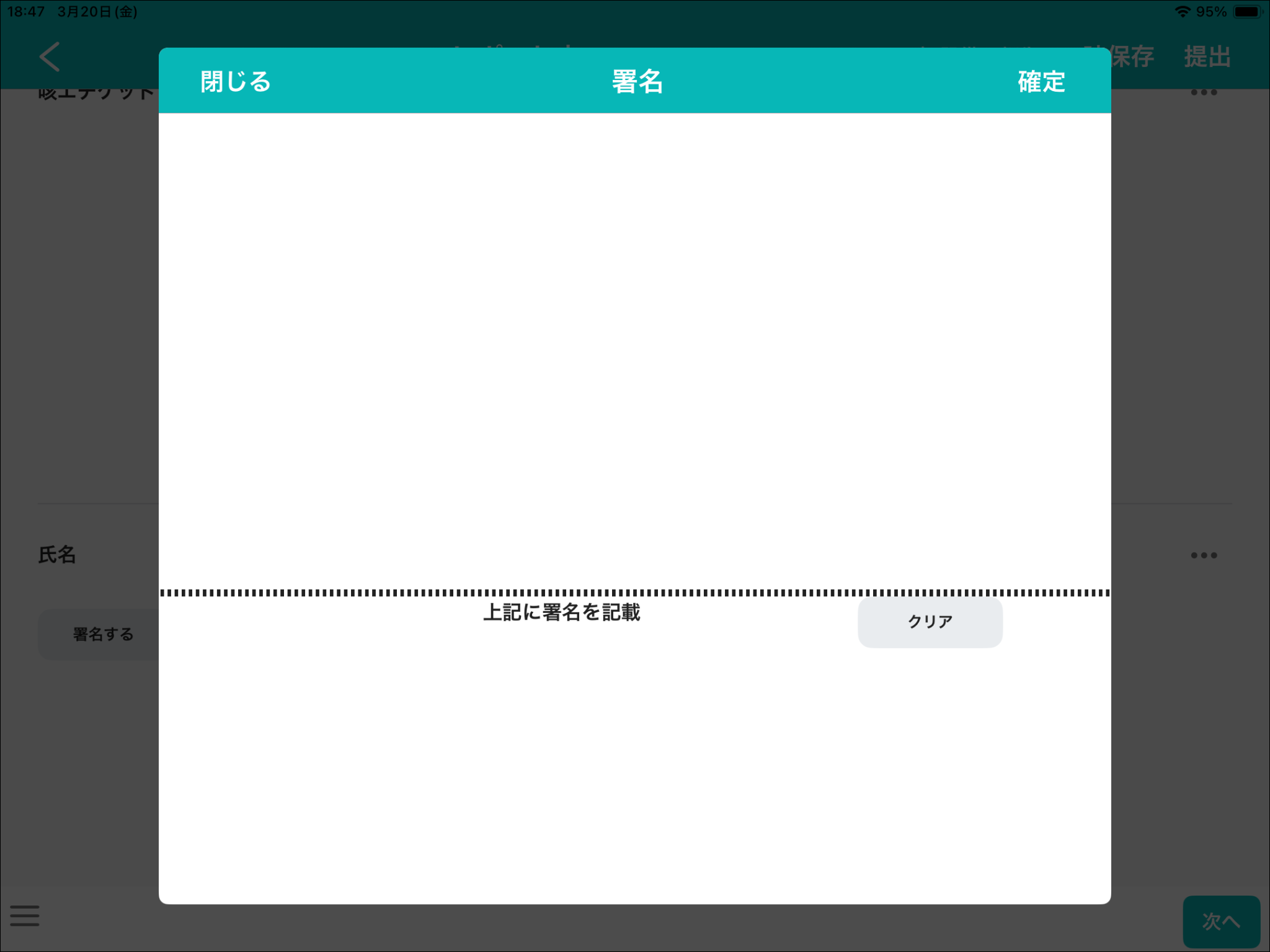 入力した署名を修正または削除する場合は、「署名する」を再度押すか、「クリア」を押します。