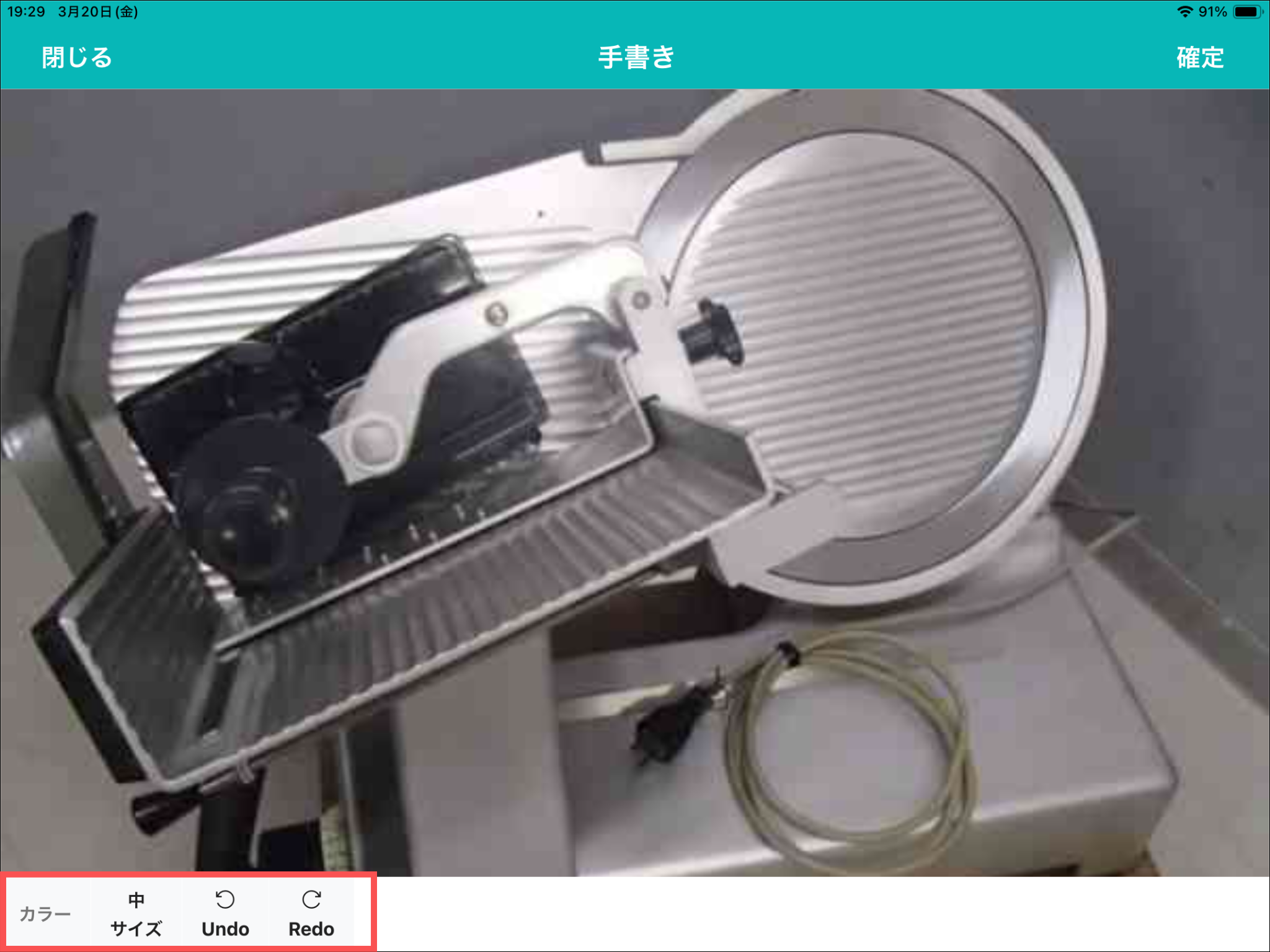 添付画像を押すと全画面表示され、◯やチェックなど手書きで記入することができます。
