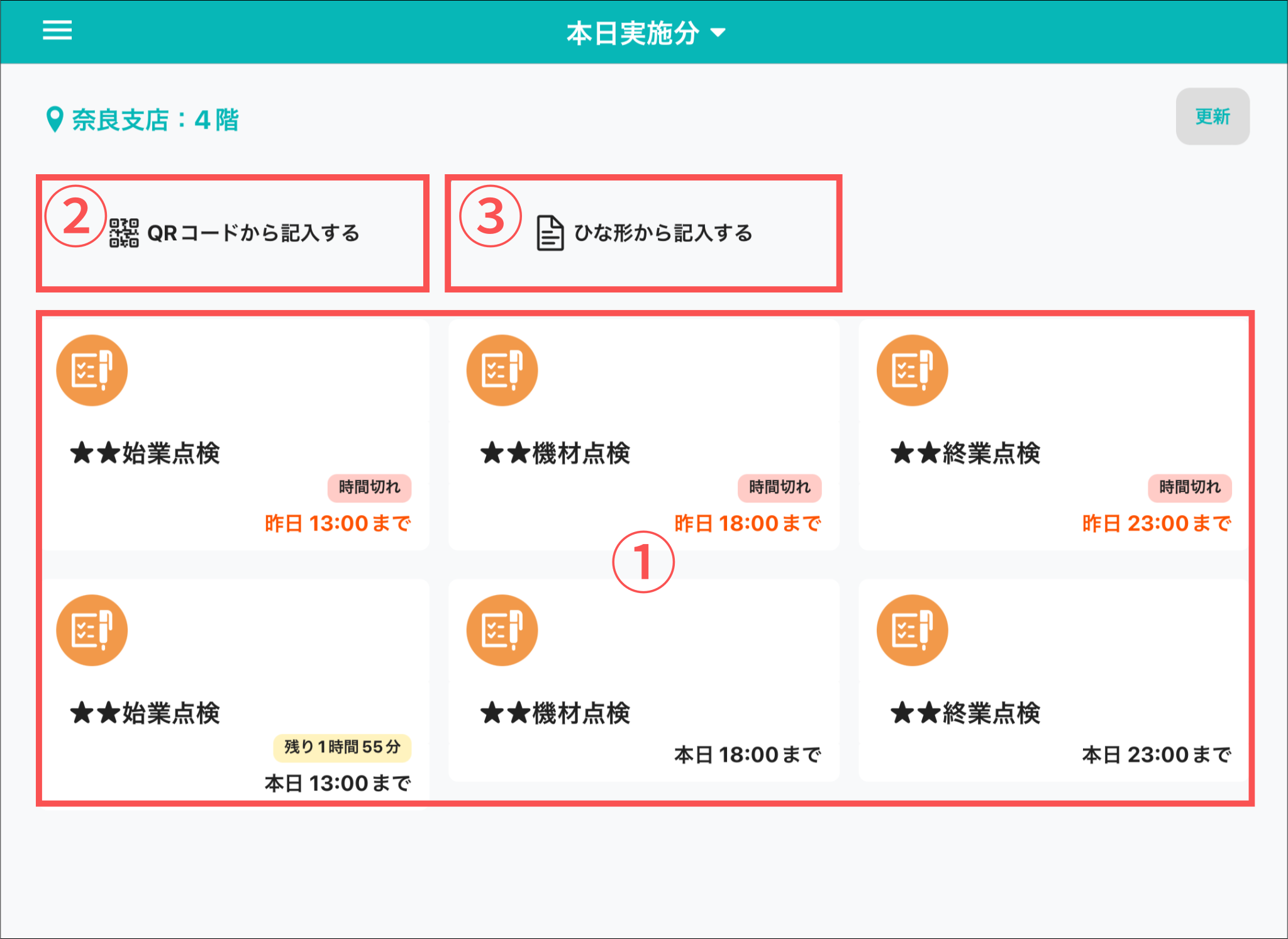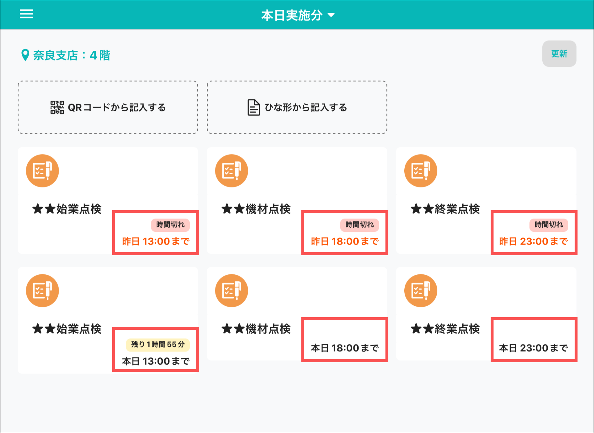 スケジュールの開始時間になると、ログインしている現場に紐付くスケジュールがカード形式で表示されます。