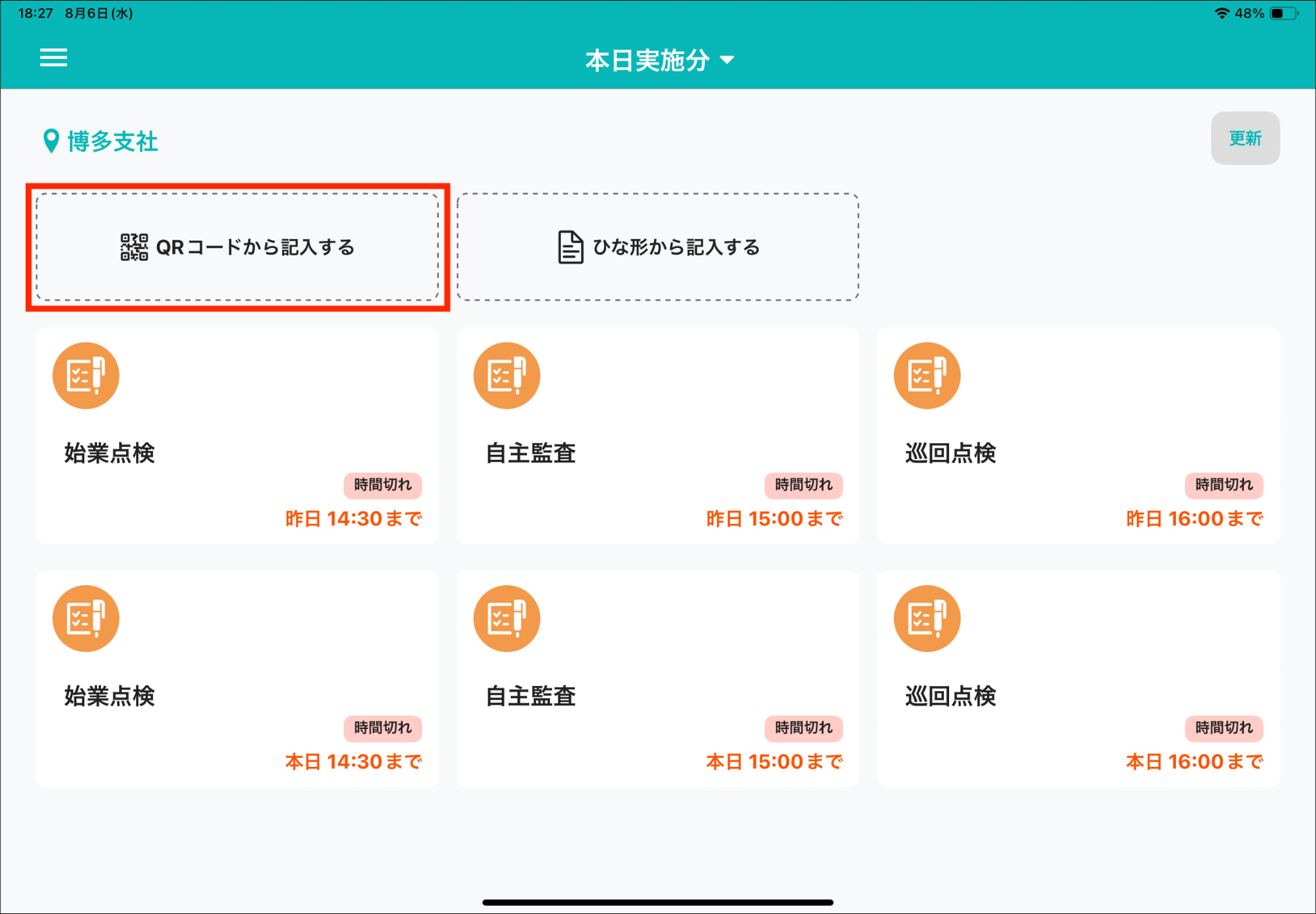 「QRコードから記入する」を押すと、QRコードスキャンが立ち上がります。