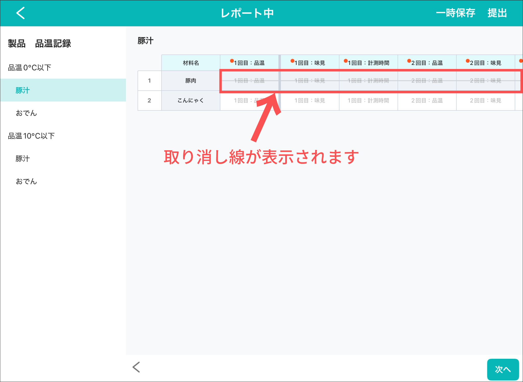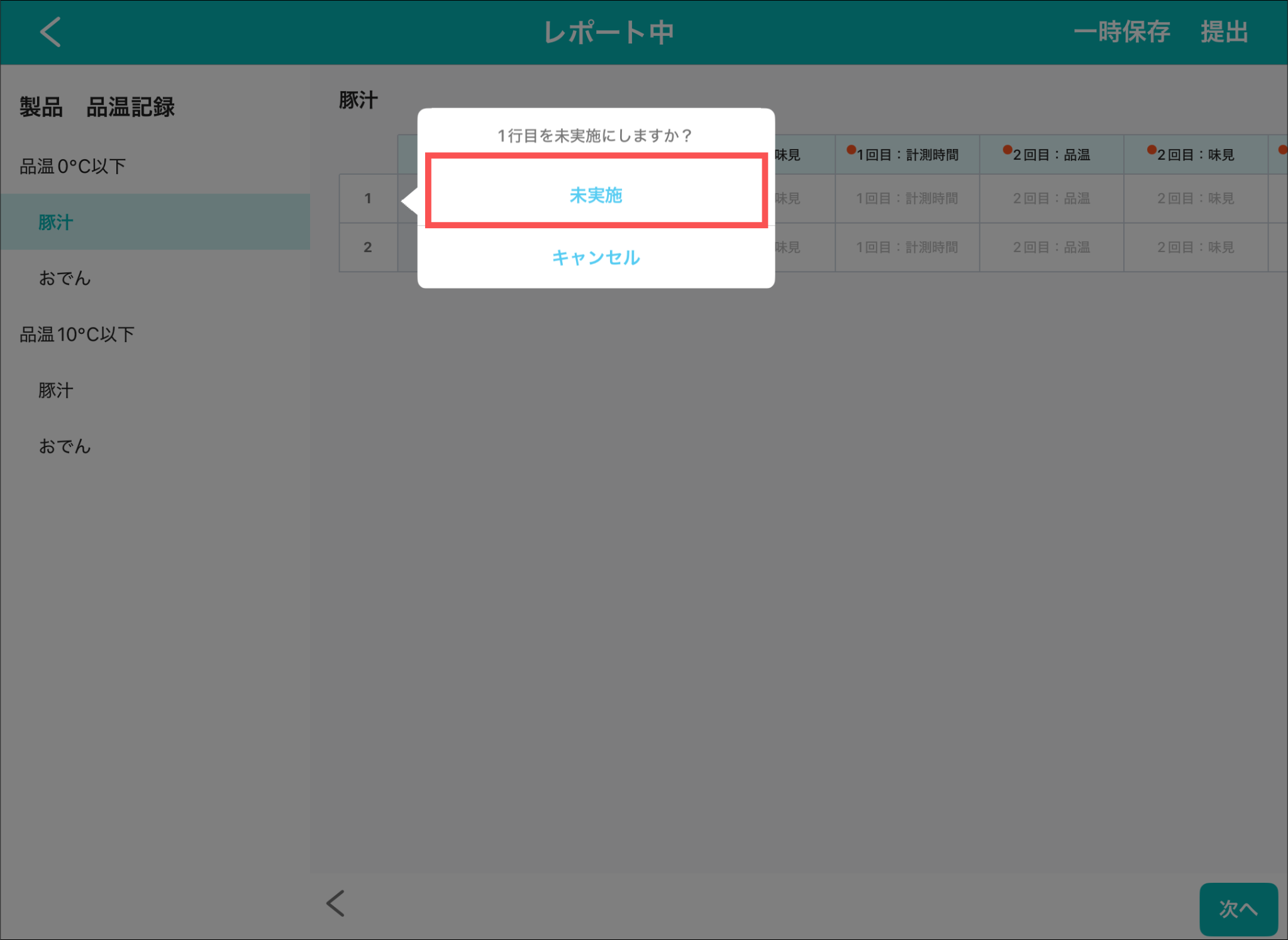 予定していた作業が中止された場合、記録の必要がなくなった場合などに「未実施」として記録を中止することができます。