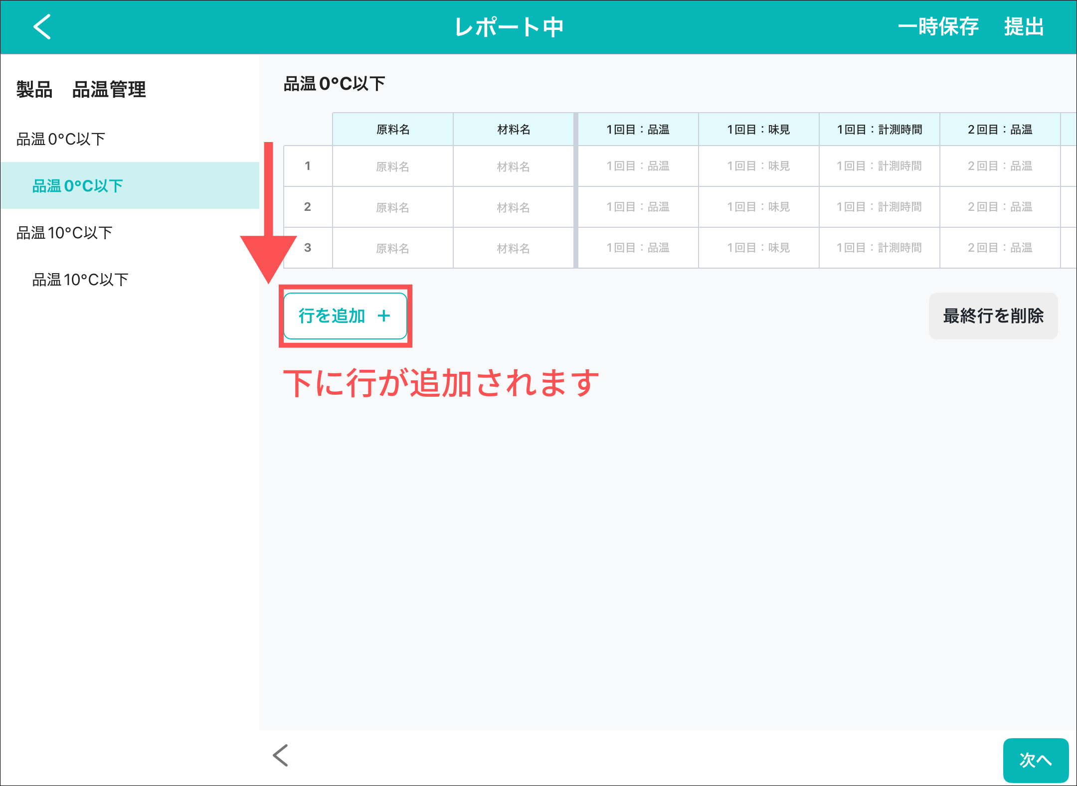 レポートの記録開始の手順は「記録アプリ(iOS/iPadOS)にて、レポートを新規作成する」をご参照ください。