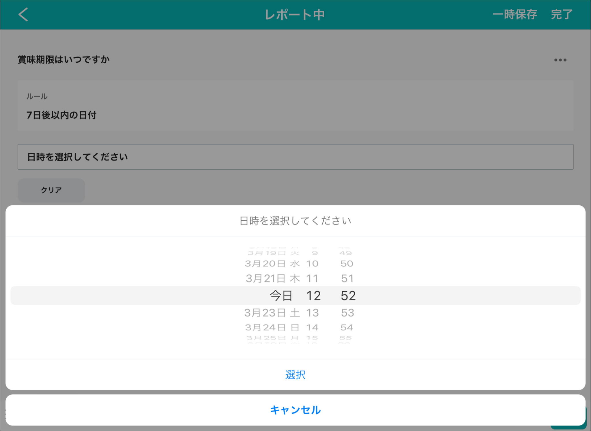 レポートの記録開始の手順は「記録アプリ(iOS/iPadOS)にて、レポートを新規作成する」をご参照ください。